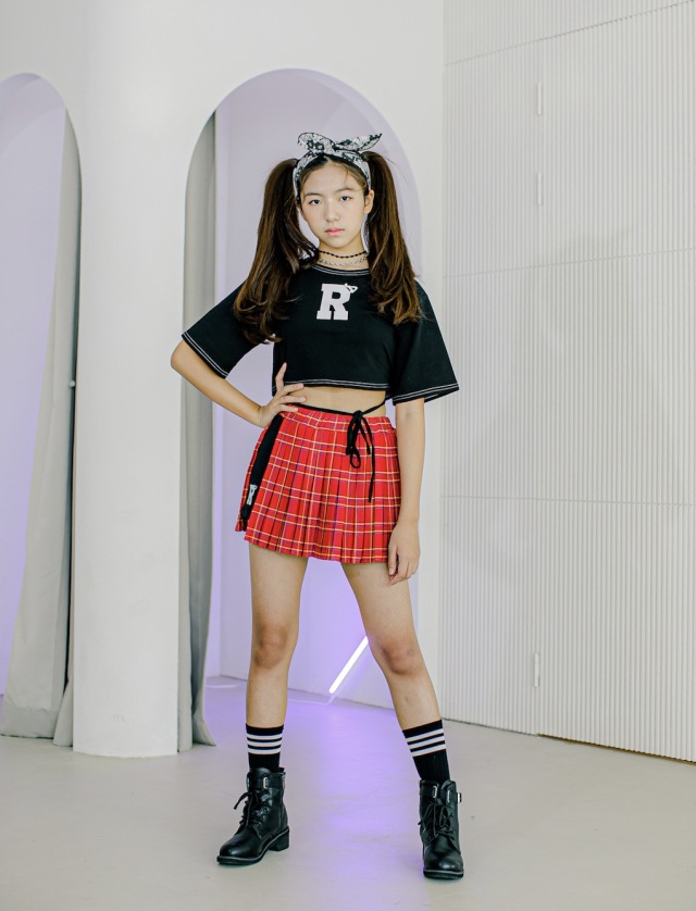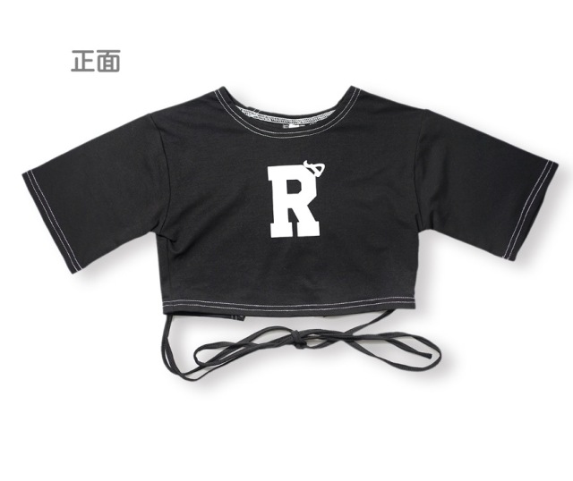 即納 キッズダンス衣装 トップス ヘソ出し ショート丈 黒 ブラック KPOP 韓国 スタイル アイドル ストリート ガールズ ヒップホップ アイドル 子供 子ども 女の子 キッズ ダンス 衣装