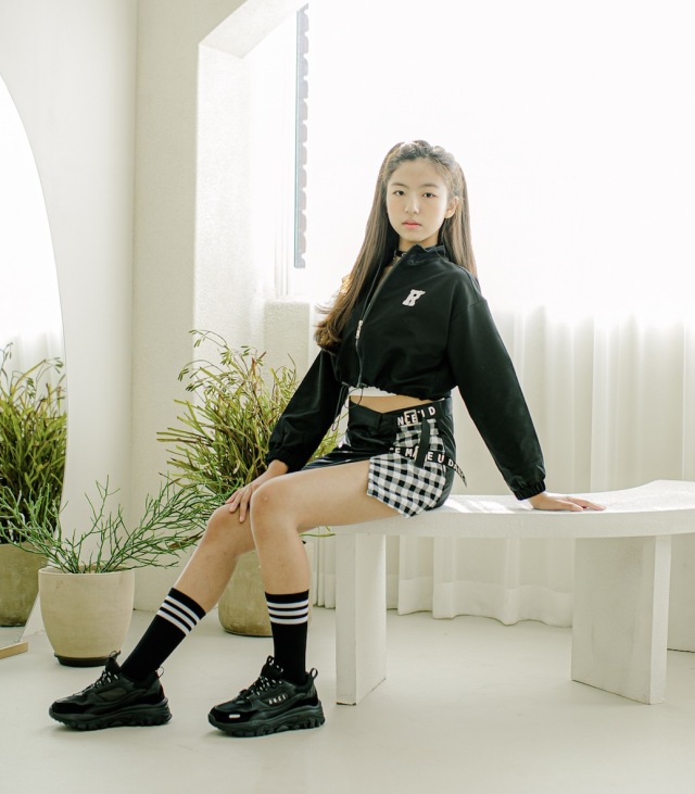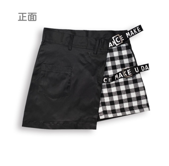 即納 キッズダンス衣装 スカート kpop 韓国 スタイル アイドル ストリート 黒 ブラック チェック 柄 ベルト 女の子 ガールズ キッズ ダンス 衣装