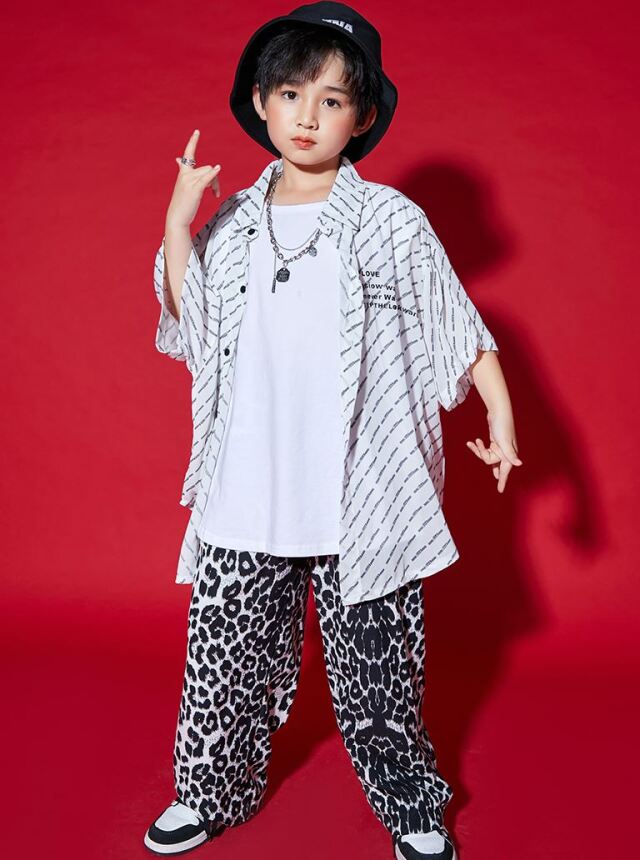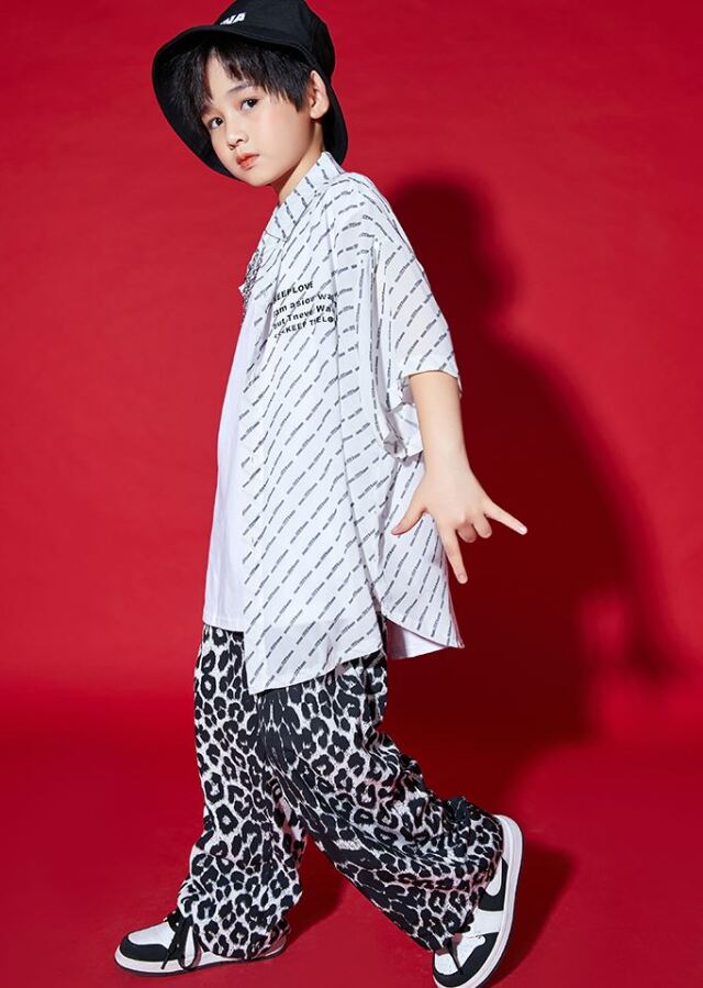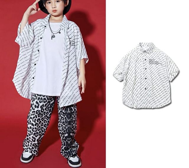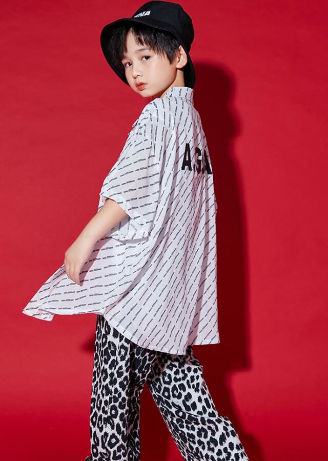 キッズダンス衣装 トップス シャツ ホワイトヒップホップストリート hiphop トップス シャツ 半袖 柄 白 子供 キッズ ダンス 衣装 女の子 男の子