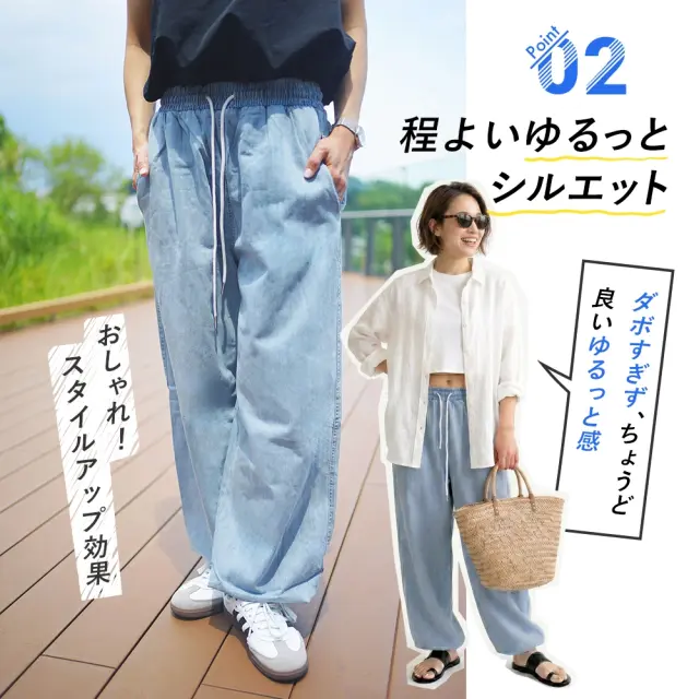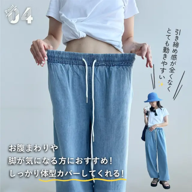 レディース ワイドパンツ デニムパンツ きれいめ 涼しい 大きいサイズ ゆったり 薄手 冷感 夏 韓国 低身長 ウエストゴム ダンス ズンバウェア レッスン着 ジーンズ 大人 ひんやり さらさら 接触冷感 落ち感 ぽっちゃり 無地ヨガ