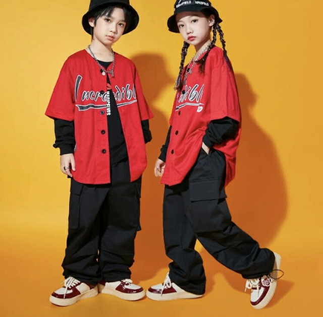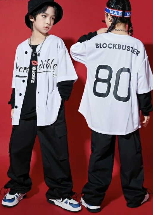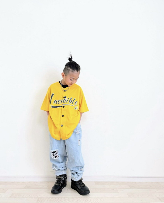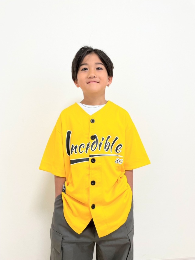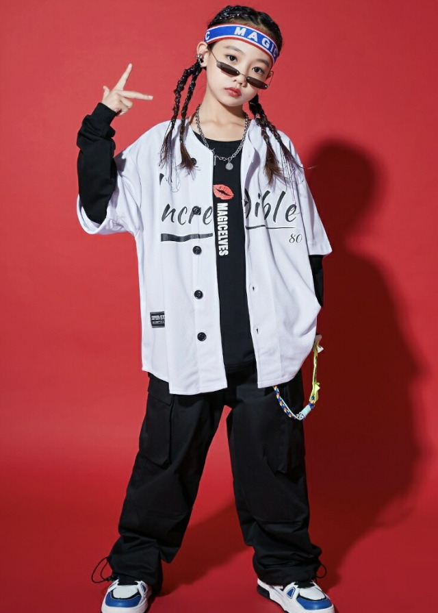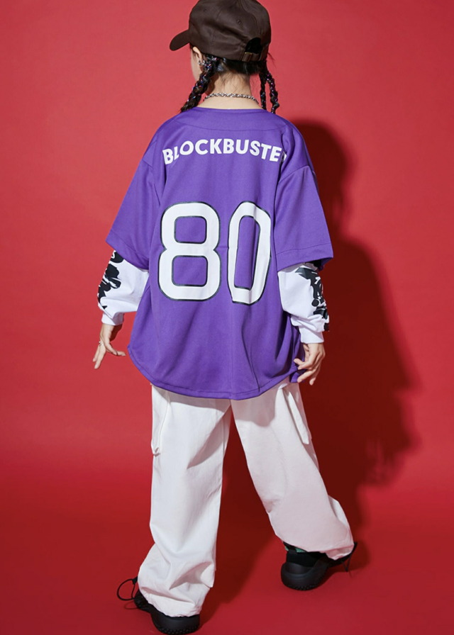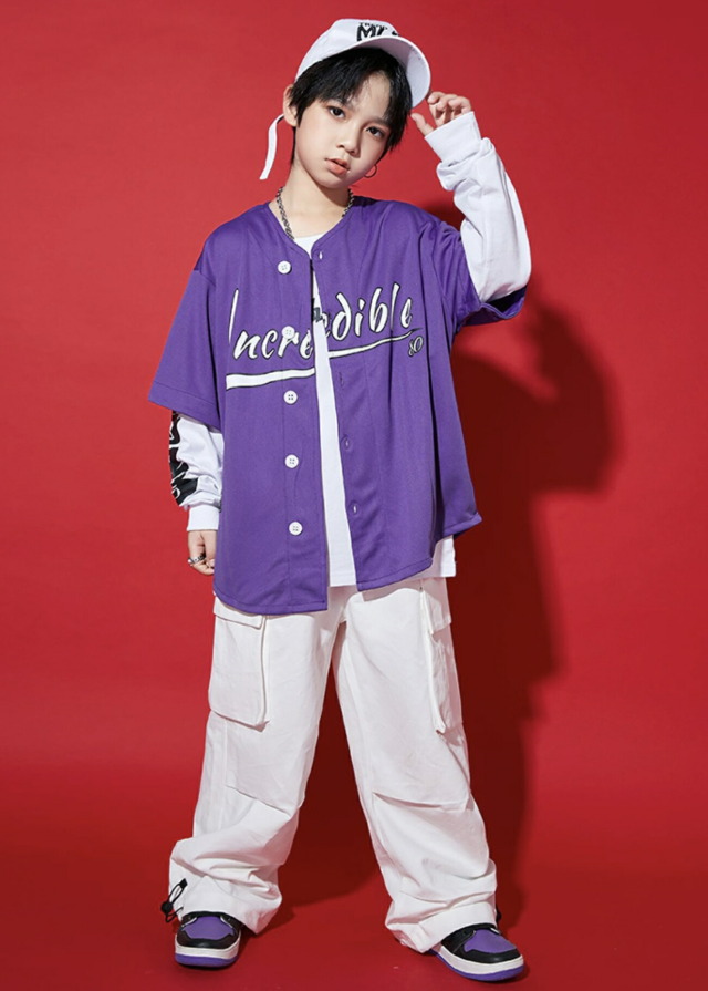 ステージ映えするキッズ向けベースボールシャツ。鮮やかなカラーバリエーションが豊富で、ステージ上でも目を引く存在感のあるデザイン。黄色・水色・紫・緑・赤・白の6色展開で、チーム衣装やソロパフォーマンスまで幅広く対応します。野球シャツスタイルの特徴的なシルエットで、ヒップホップ・K-POPダンスに最適な動きやすさを実現。8サイズ展開でお子様の体型に合わせて選択できます。