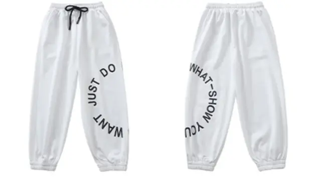 即納 キッズ ダンス 衣装 スウェットパンツ ホワイト ブラック 白 黒 ロゴ 練習着 おしゃれ かわいい ガールズ ヒップホップ hiphop kpop 韓国 キッズダンス衣装 綿
