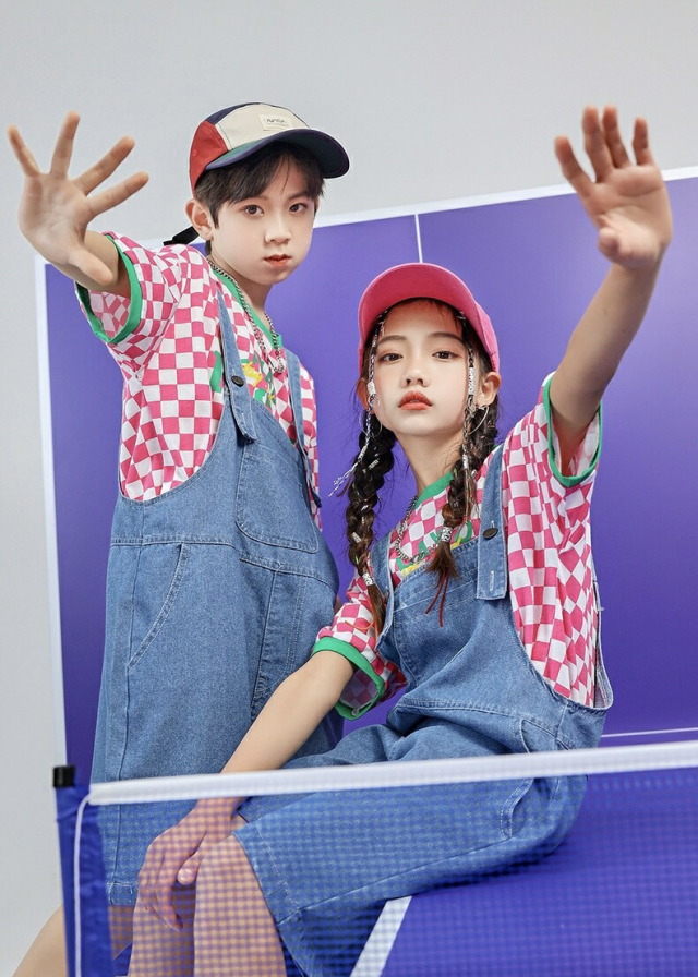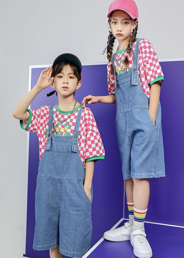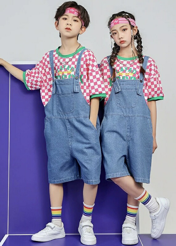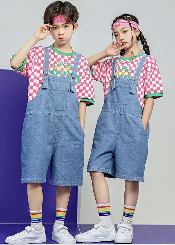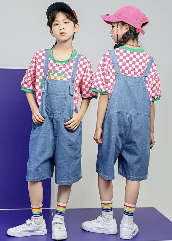 キッズダンス衣装 オーバーオール デニム ジーンズ つなぎ サロペット ヒップホップ トップス hiphop kpop 韓国 子供 キッズ ダンス衣装 女の子 男の子