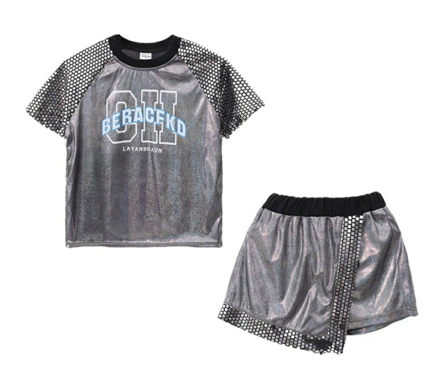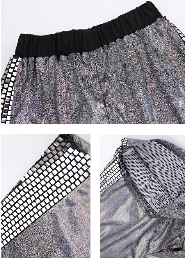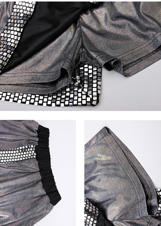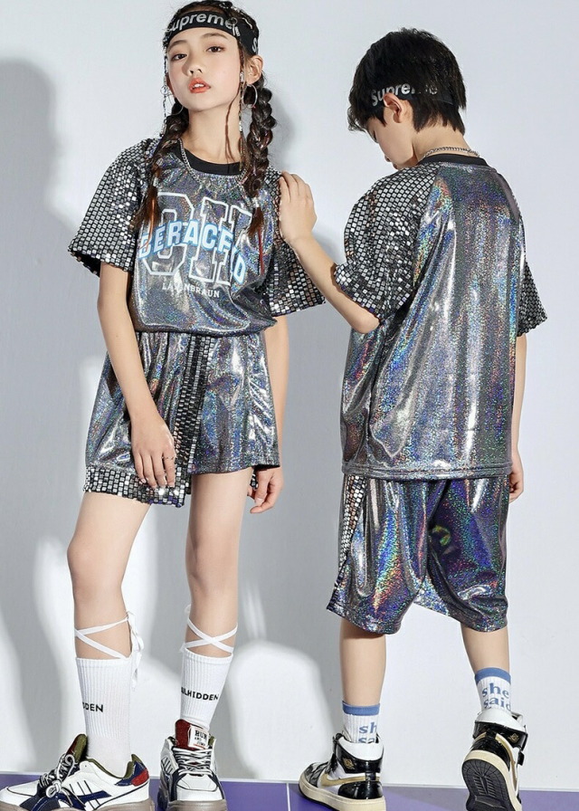 キッズダンス衣装 きらきら セットアップ シルバー 銀 発表会 ステージ衣装 半袖 シャツハーフパンツヒップホップ トップス hiphop kpop 韓国 子供 キッズ ダンス 衣装 女の子 男の子