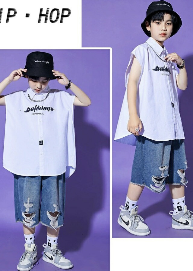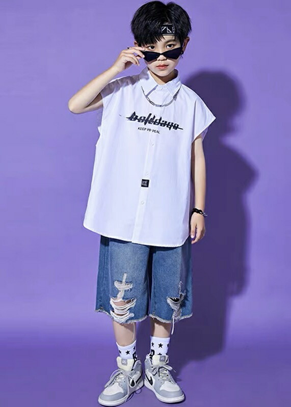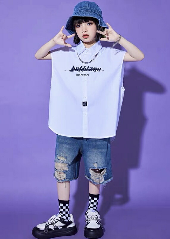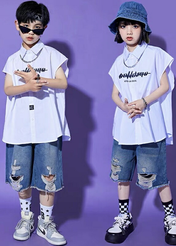 キッズダンス衣装 ダメージ デニム ハーフパンツ ヒップホップ ハーパン 夏 hiphop kpop 韓国 子供 キッズ ダンス衣装 女の子 男の子