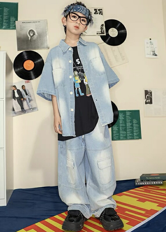 キッズ デニム カーゴパンツ ダンス 衣装 ヒップホップ hiphop kpop 可愛い 韓国 ストリート 子供 キッズダンス衣装 女の子 男の子 ガールズ
