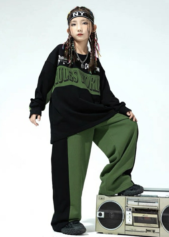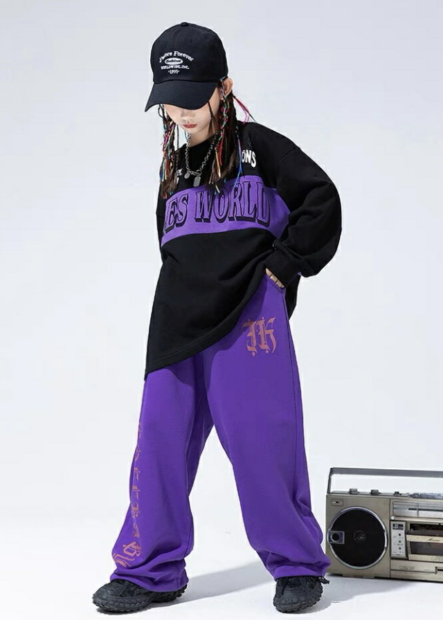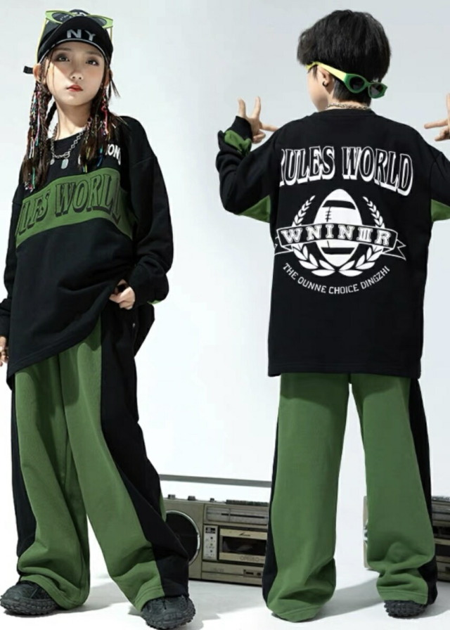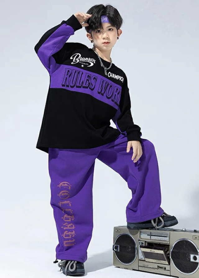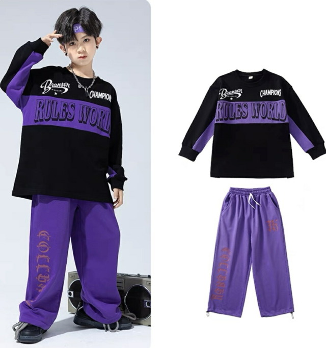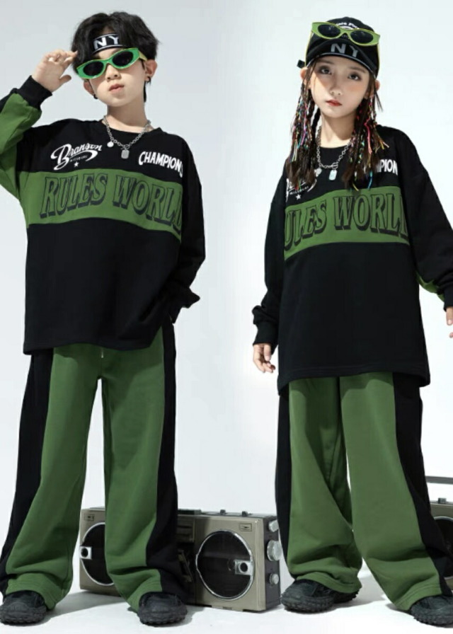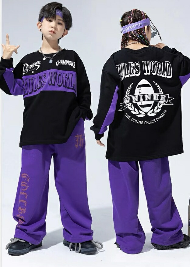 キッズダンス衣装 セットアップ スウェット トップス パンツ 長袖 グリーン パープル ヒップホップ hiphop kpop 韓国 子供 キッズ ダンス衣装 女の子 男の子