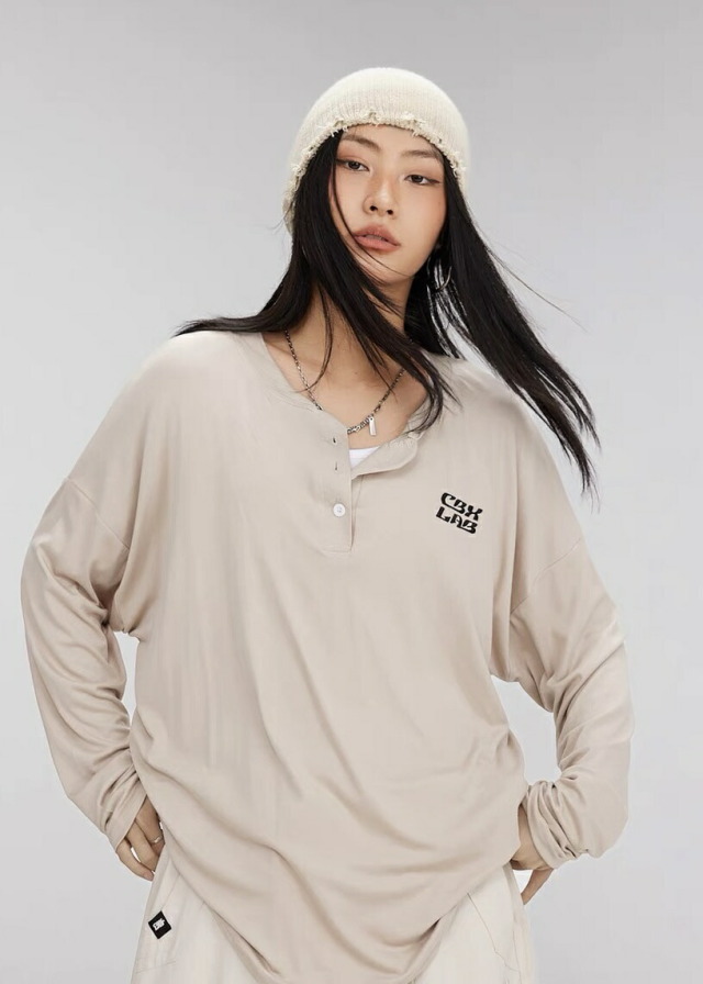 CBX LABブランドのレディースTシャツで、ホワイト、ブラック、グレー、クリーム、ネイビー、ワインレッドの6色展開。吸汗速乾機能でシワになりにくく、半袖、五分袖、長袖から選べます。ゆったりとしたフリーサイズで涼しく快適な着心地。ヘンリーネックとロゴデザインがおしゃれで、フィットネスやダンス、ズンバの練習着として最適。ヒップホップダンスから普段着まで幅広く活躍します。