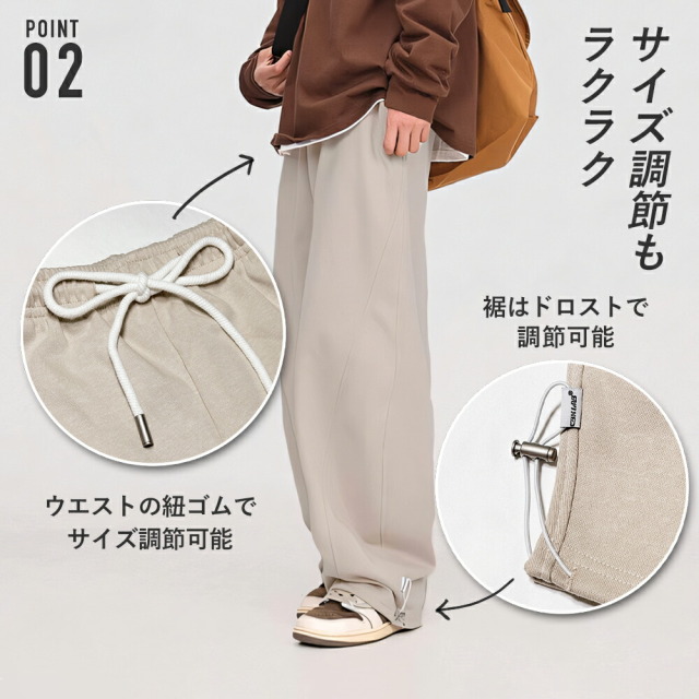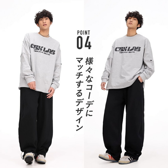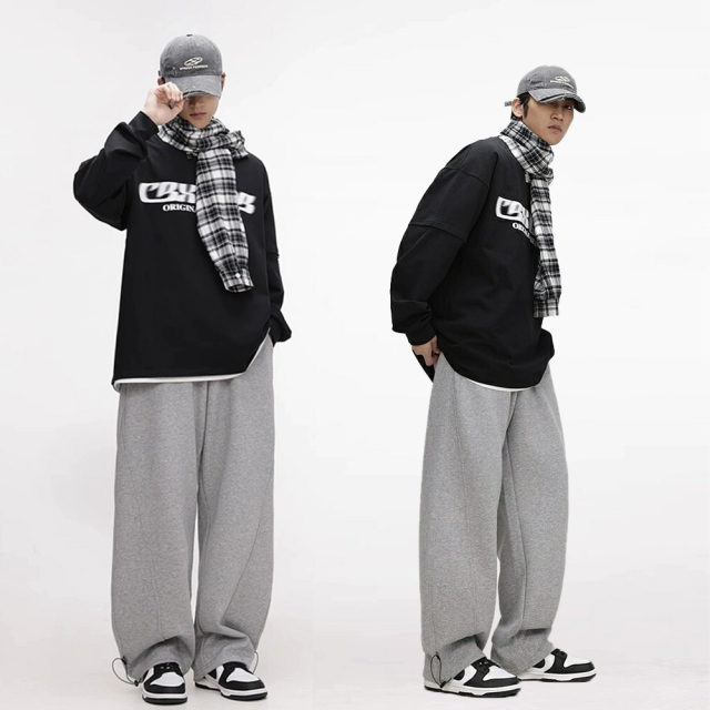 裏起毛仕様のメンズダンス用スウェットパンツ。綿混素材と裏起毛仕様で春夏から秋冬まで年中快適に着用可能。ゆったりとしたジョガーパンツスタイルで、ストリートダンス・ヒップホップに最適です。グレー・ブラック・ホワイト・クリームの4色展開で、男性らしいシンプルなデザイン。練習着からレッスン着、部屋着まで幅広く活躍し、5サイズ対応で体型に合わせて選択可能。韓国風のブランド品質で、大人男性ダンサーに人気の高いワイドパンツです。