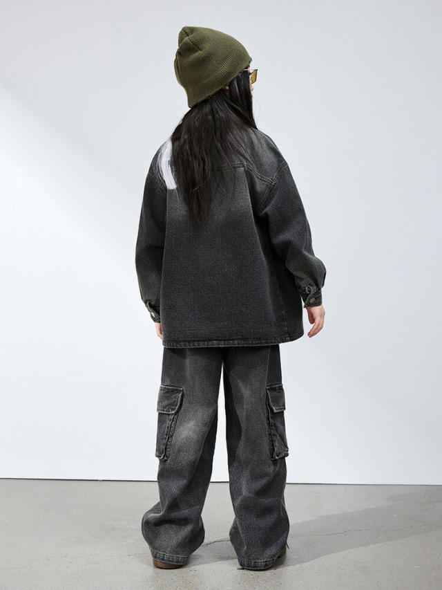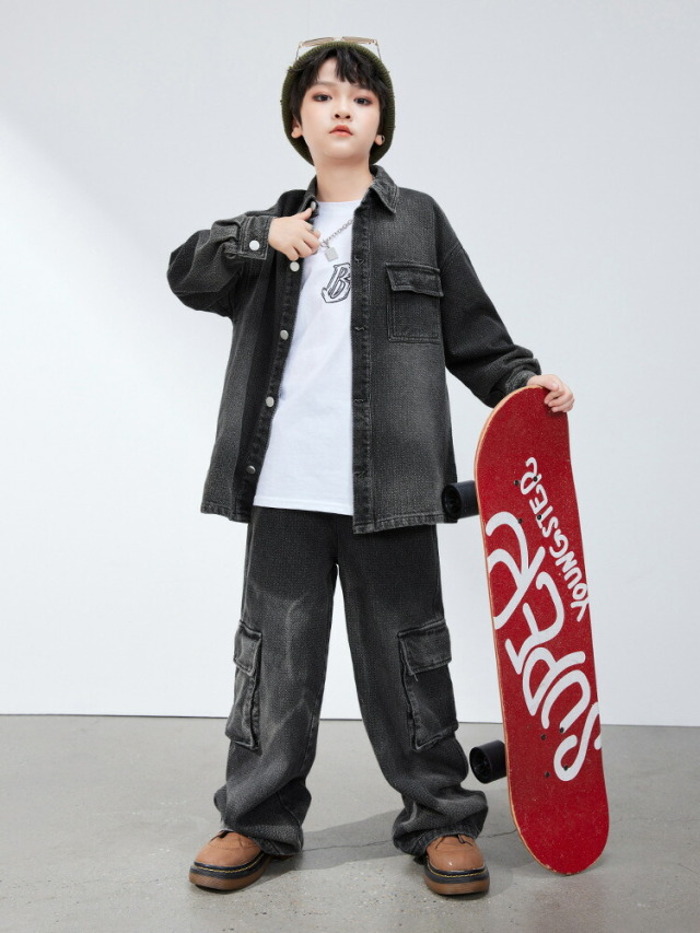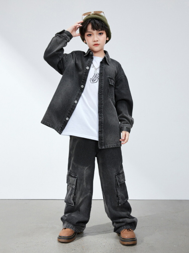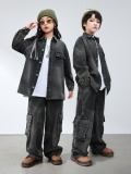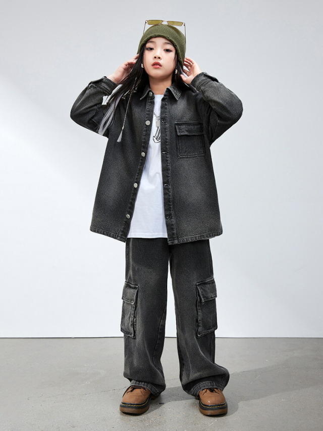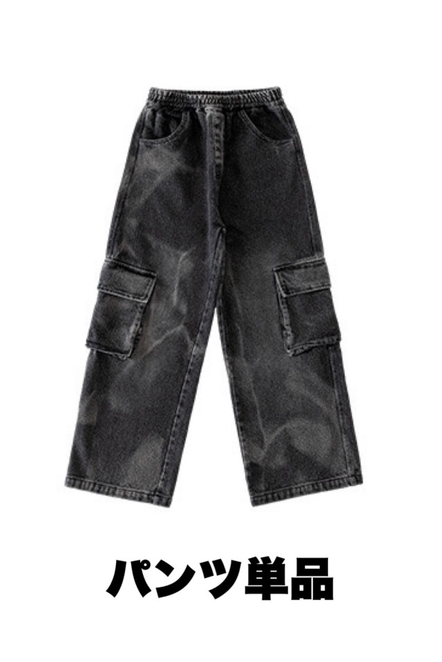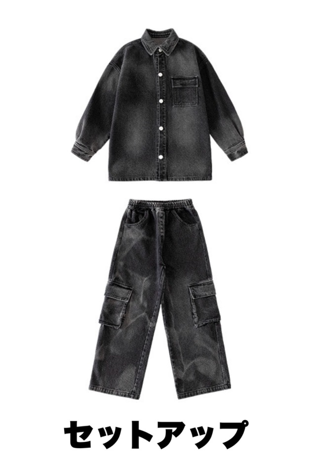 キッズダンス衣装 デニム セットアップ トップス パンツ ジーンズ カーゴパンツ ヒップホップ hiphop kpop 韓国 子供 キッズ ダンス衣装 女の子 男の子