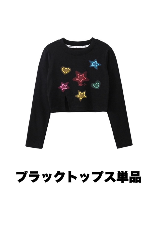 ホワイト、ブラック、ライトブルーのスタークロップトップとスカートのセットアップで、ブラックトップスセット、ブルートップスセット、各種単品から選べます。110cmから180cmまでの幅広いサイズ展開で、星柄デザインがかわいい。女の子向けのガールズ衣装で、クロップド丈トップスがおしゃれ。ヒップホップダンスやトレンドのストリートファッションとして人気で、ダンスレッスンから普段着まで活躍します。