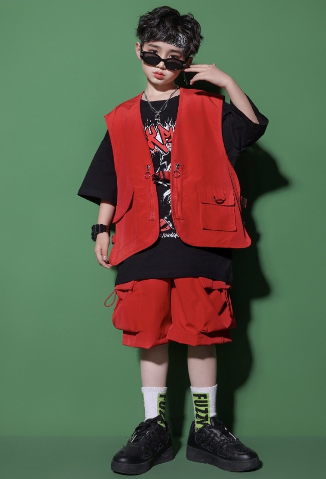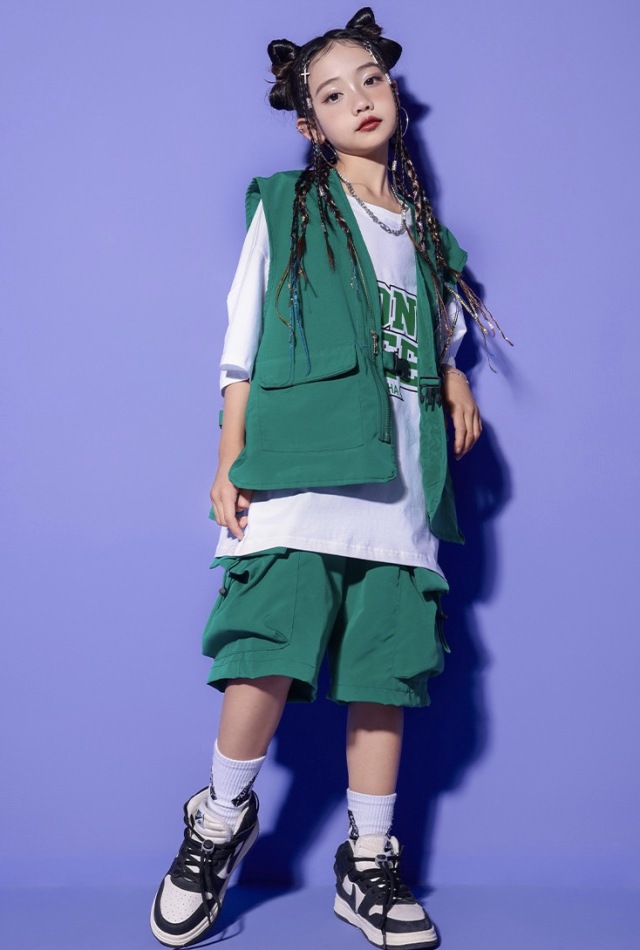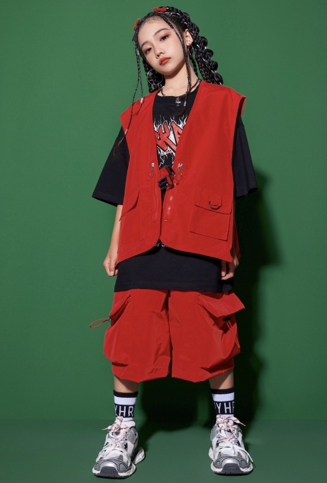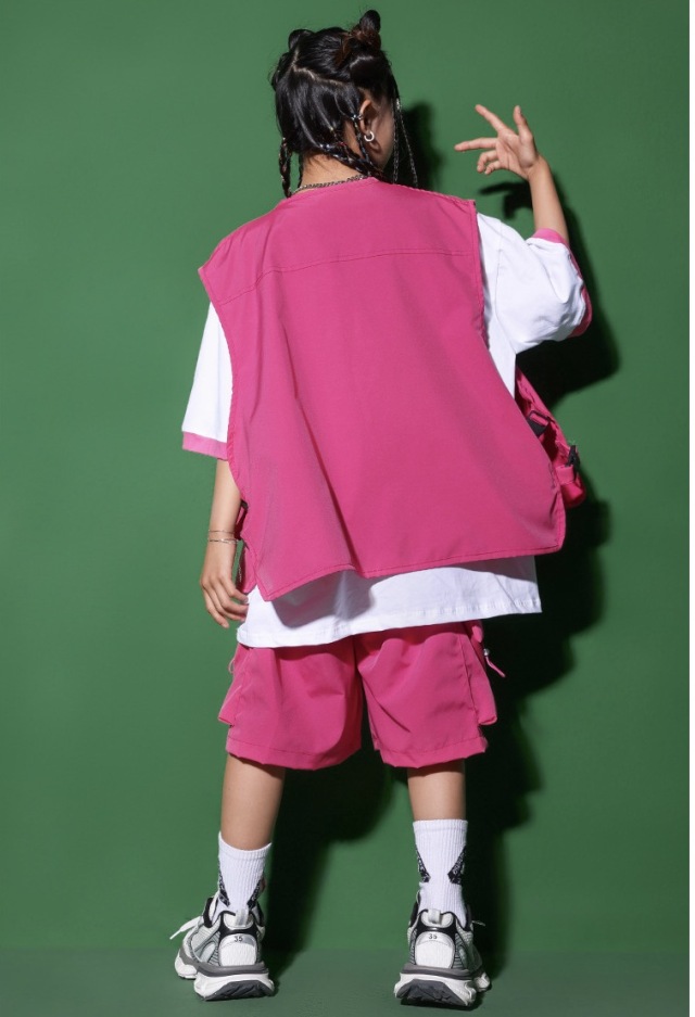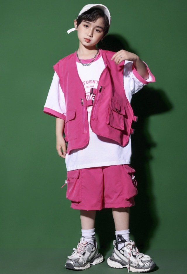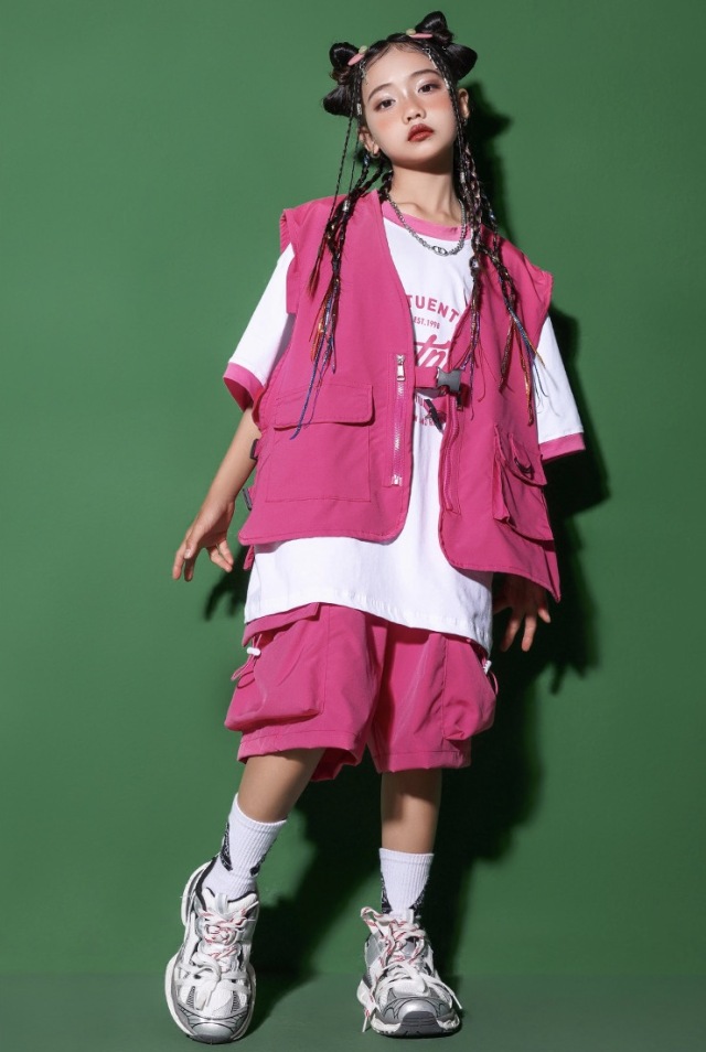 キッズダンス衣装 セットアップ ベスト トップス パンツ カーゴパンツ ピンク グリーン レッド ヒップホップ ガールズ hiphop kpop 韓国 子供 キッズ ダンス衣装 女の子 男の子