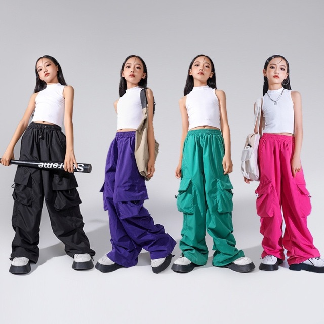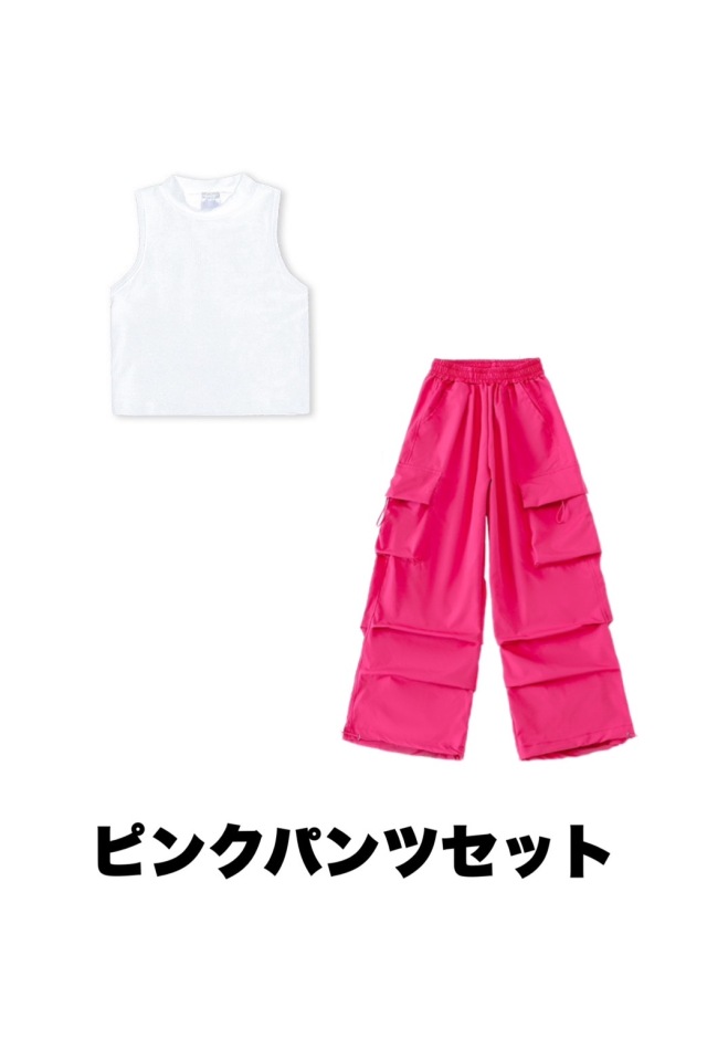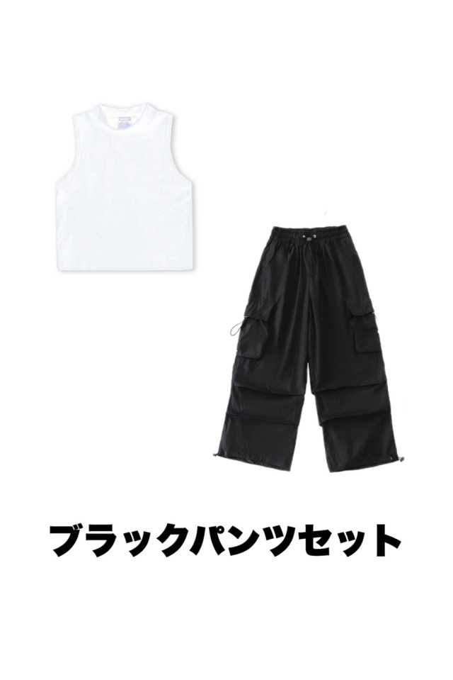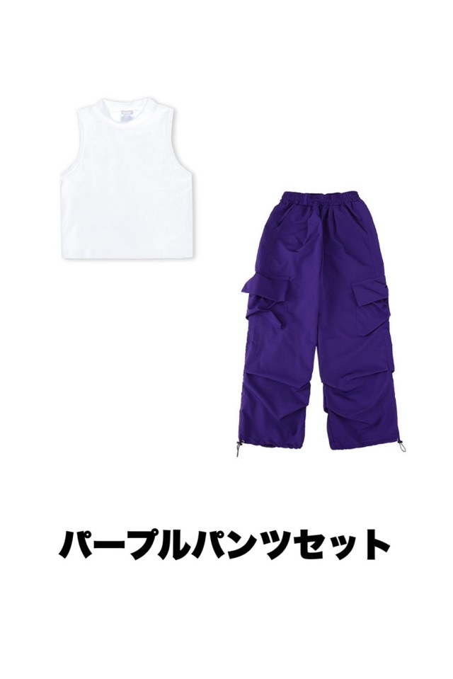 キッズダンス衣装 セットアップ トップス パンツ カーゴパンツ クロップトップ ノースリーブ ホワイト ブラック ピンク グリーン パープル ヒップホップ ガールズ hiphop kpop 韓国 子供 キッズ ダンス衣装 女の子