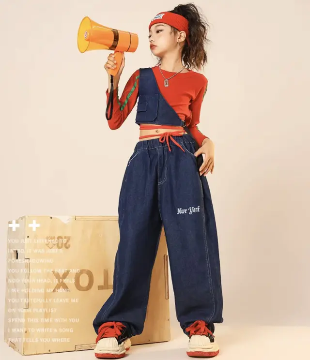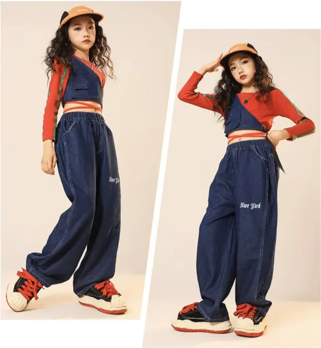 キッズダンス衣装 デニム パンツ セットアップ トップス ガールズ ヒップホップ hiphop kpop 韓国 子供 キッズ ダンス衣装 女の子