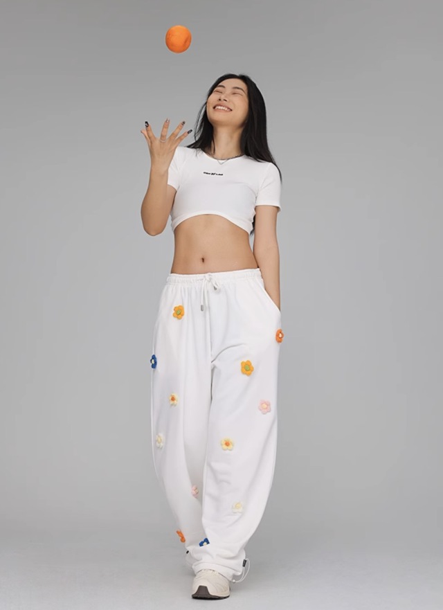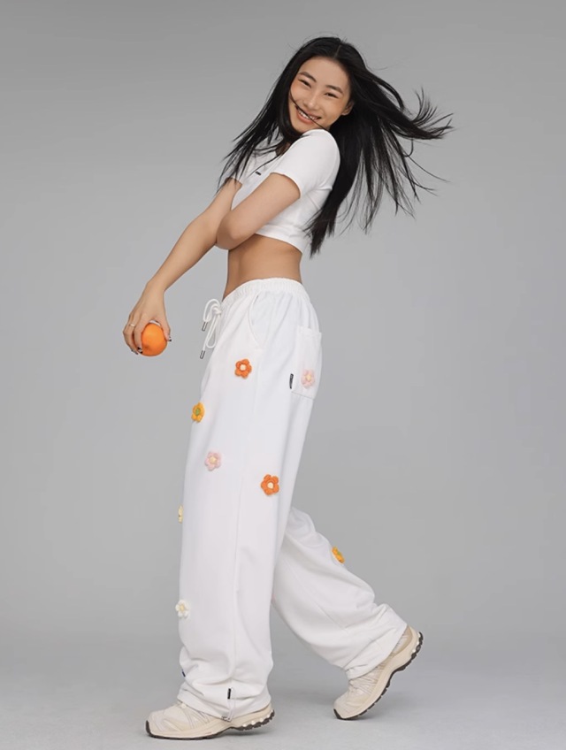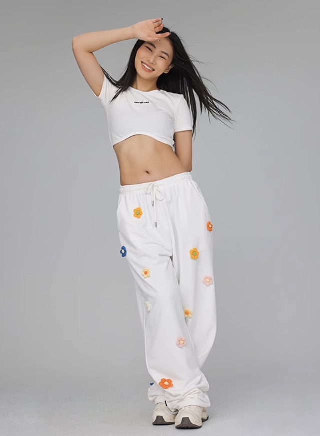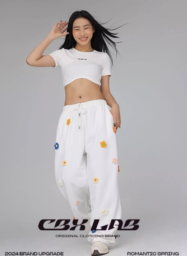 【CBX LAB】レディース ダンス スウェットパンツ 衣装 ホワイト ワイド 花柄 練習着 レッスン着 ゆったり ストリート hiphop 大人 韓国 kpop ガールズ おしゃれ ズンバウェア ダンスウェア