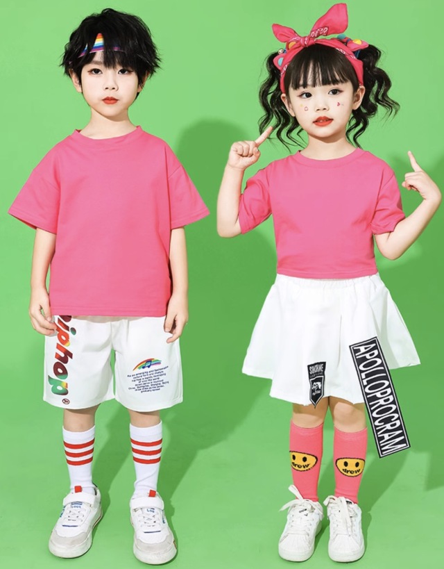 キッズダンス衣装 半袖 tシャツ ホワイト オレンジ ピンク イエロー パープル ヘソ出し ショート丈 ヒップホップ hiphop kpop 韓国 子供 キッズ ダンス衣装 女の子 男の子