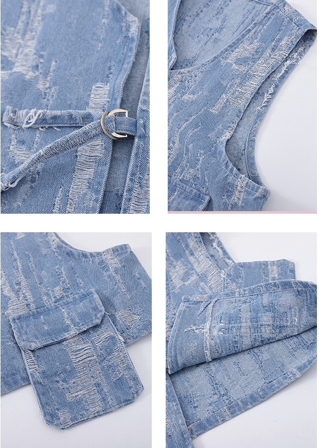デニムベストとハーフパンツのセットアップで、黒シャツ3点セット、白シャツ3点セット、2点セットから選べます。110cmから180cmまでの幅広いサイズ展開で、ホワイトとブラックのTシャツ。デニムベストとハーフパンツの組み合わせがかっこよく、男女兼用のガールズ向けデザイン。ヒップホップダンスやK-POP風ストリートスタイルとして人気。ダンスレッスンから普段着まで活躍します。
