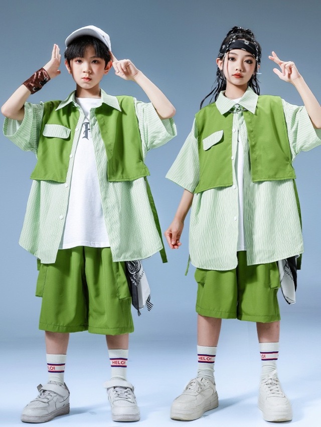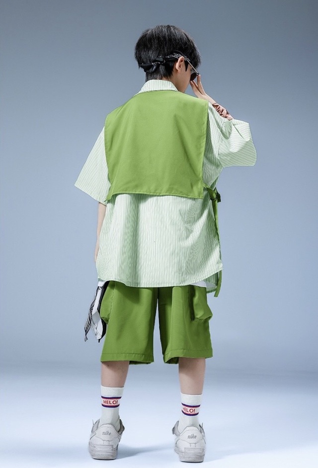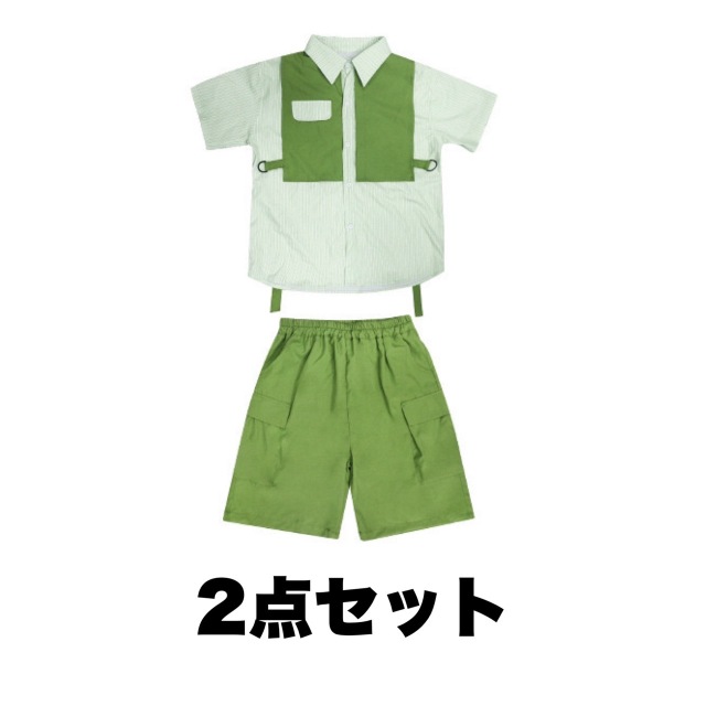 キッズダンス 衣装 シャツ ハーフパンツ トップス グリーン 緑 ヒップホップ hiphop kpop 韓国 子供 キッズ ダンス衣装 女の子 男の子