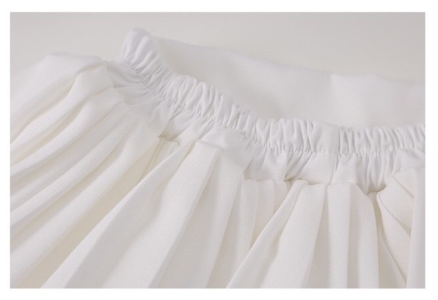 白と黒のモノトーンが洗練されたTシャツとスカートのガールズダンス衣装です。上下2点セット、トップス単品、スカート単品から選択可能。シンプルな白黒デザインが特徴的で、ヒップホップダンスやトレンドのストリートファッションに最適。女の子の発表会や練習着として、どんなシーンにも合わせやすいスタイルです。