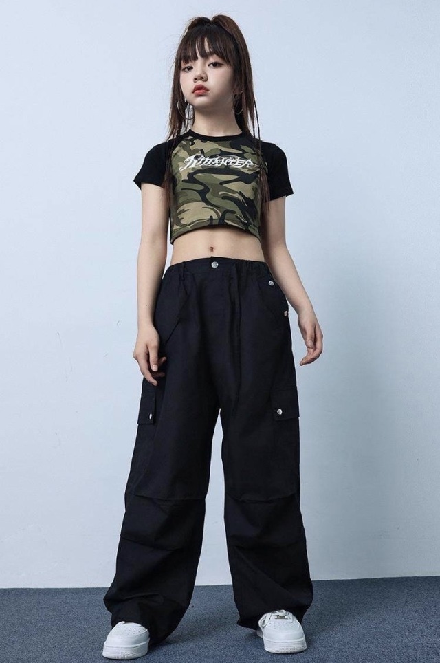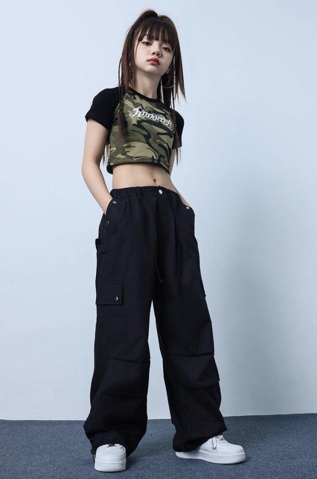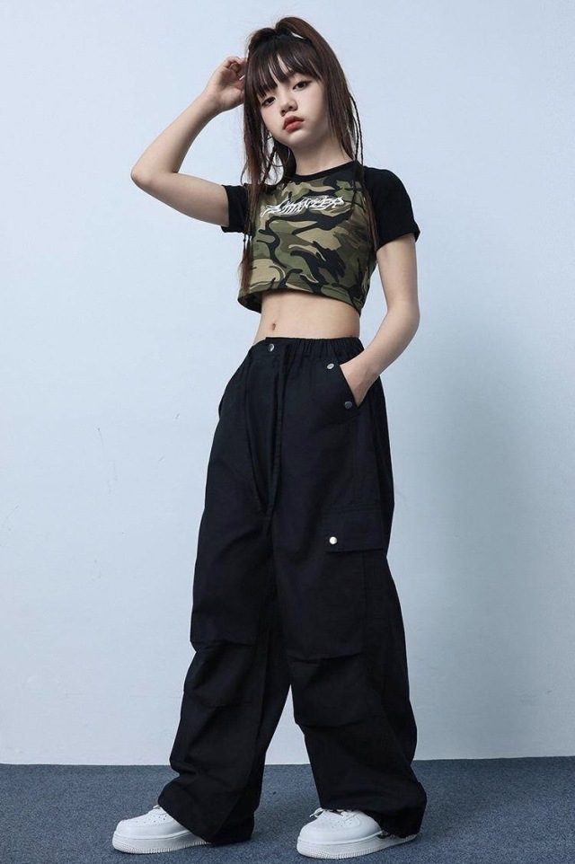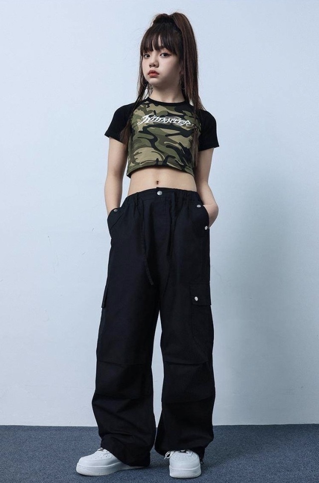tシャツ パンツ キッズ ダンス 衣装 ガールズ へそだし クロップド丈 ヒップホップ kpop 韓国 子供 キッズ ダンス衣装 女の子