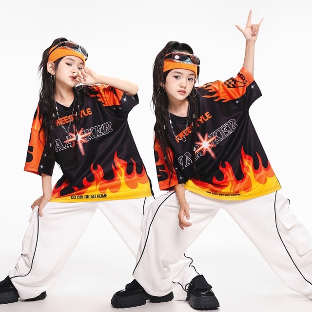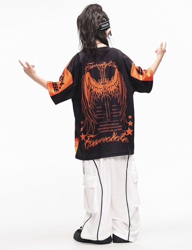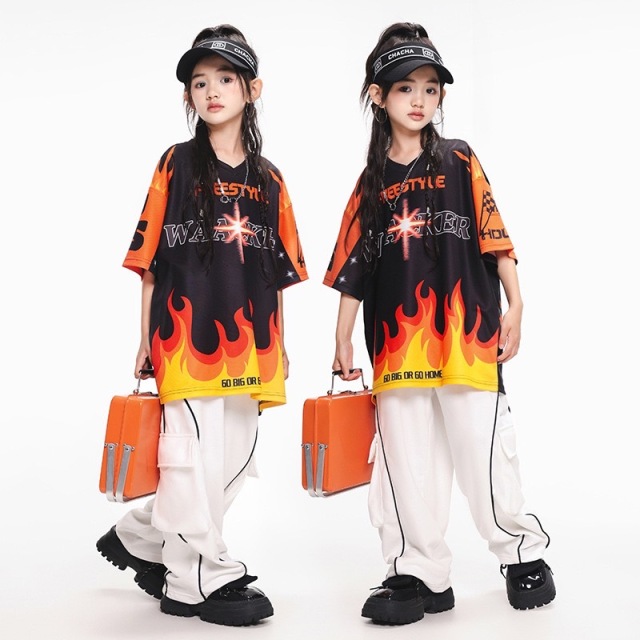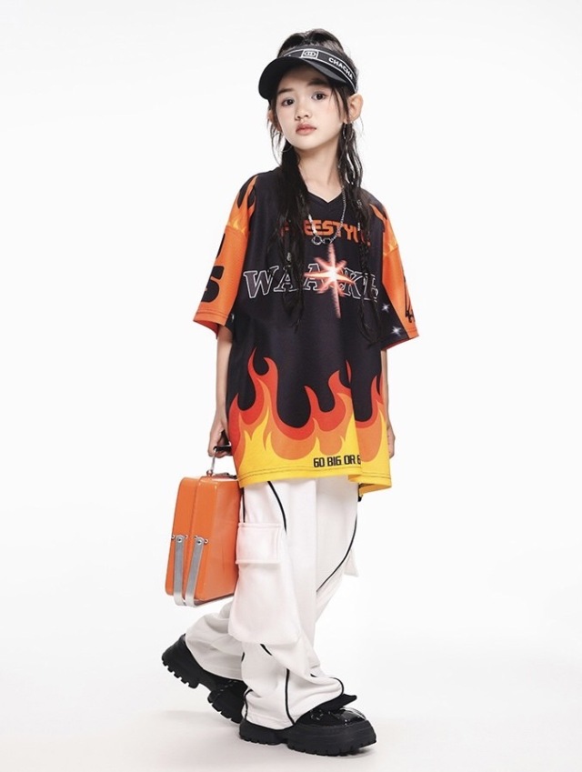 キッズ ダンス 衣装 tシャツ パンツ ファイヤー 半袖 ヒップホップ kpop 韓国 子供 キッズ ダンス衣装 女の子 男の子