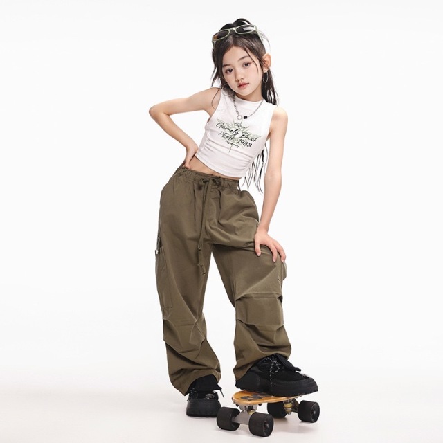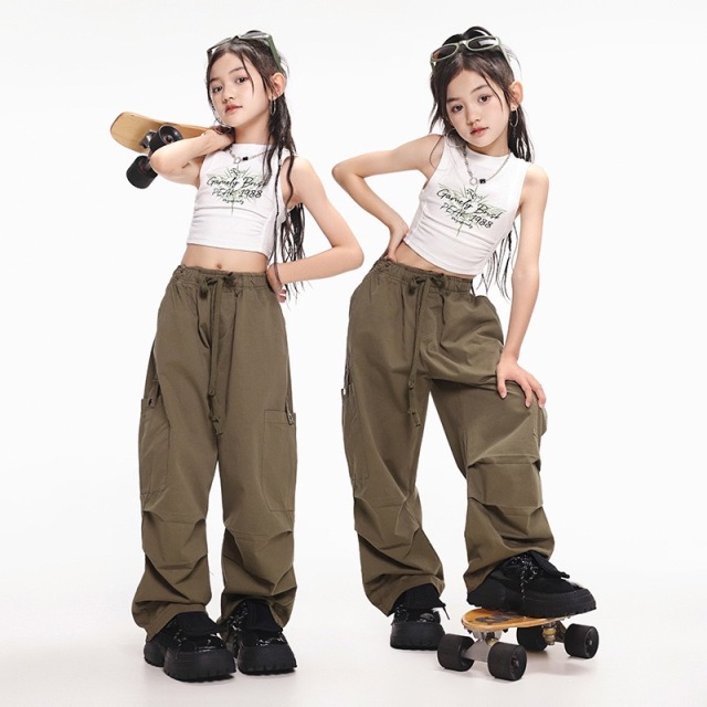 キッズ ダンス 衣装 タンクトップシャツ パンツ ノースリーブ ガールズ ヒップホップ kpop 韓国 子供 キッズ ダンス衣装 女の子