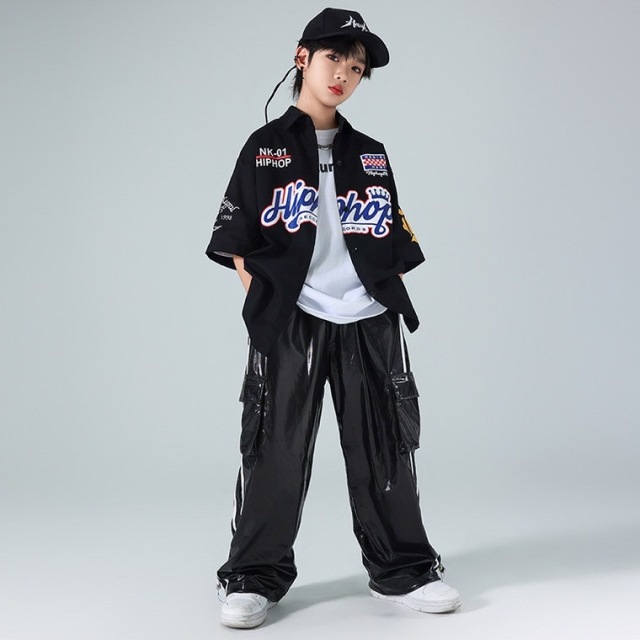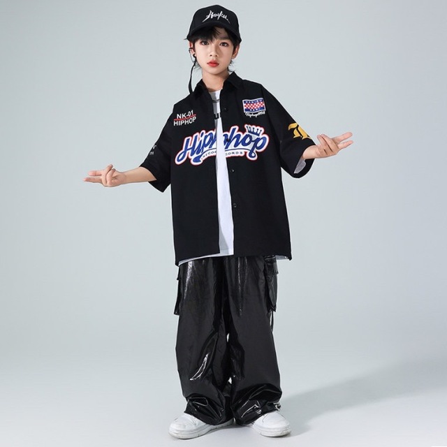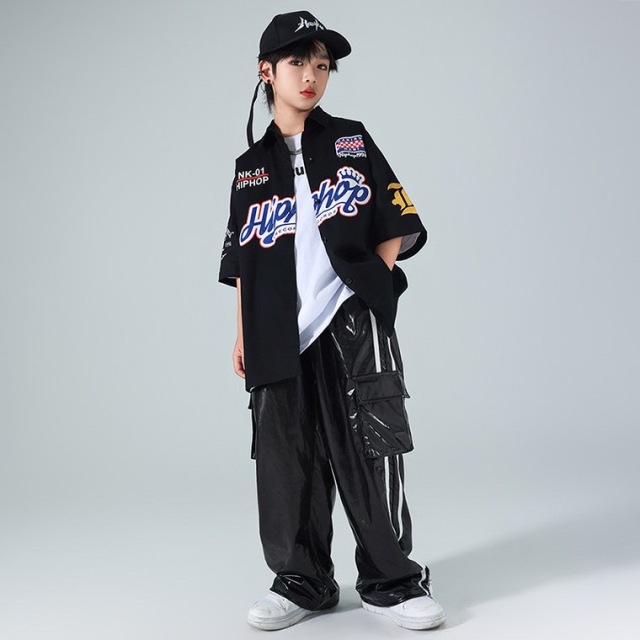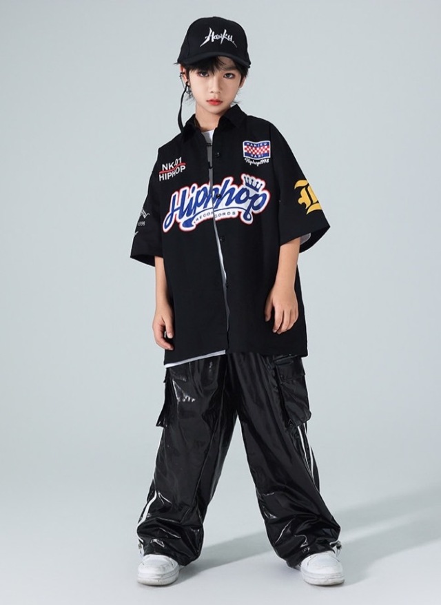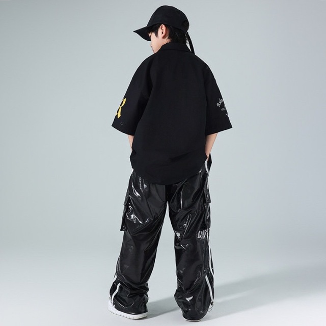 キッズダンス ガールズ 衣装 半袖 シャツ パンツ トップス 黒 ブラック ヒップホップ hiphop kpop 韓国 子供 キッズ ダンス衣装 女の子
