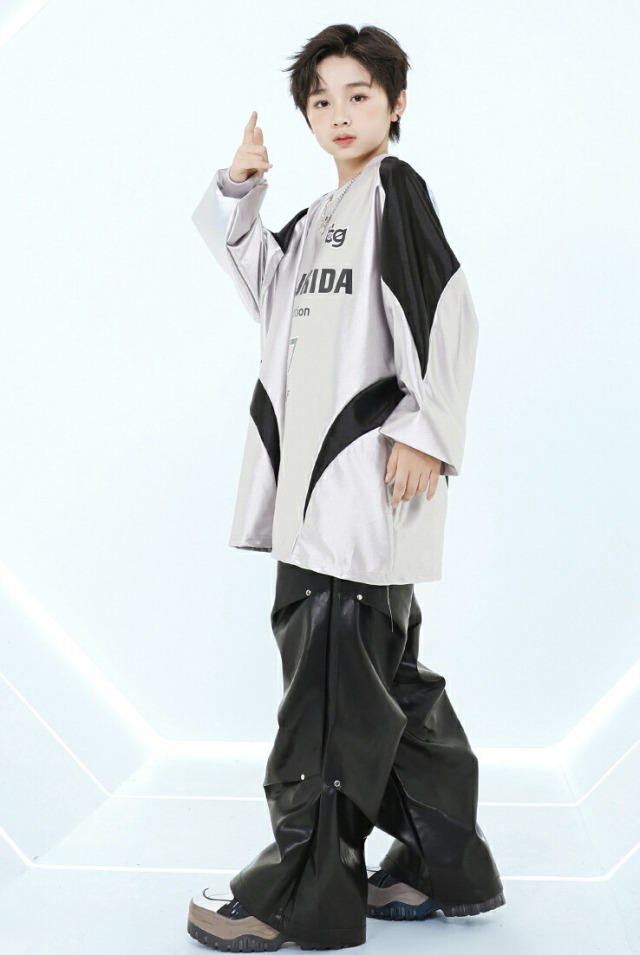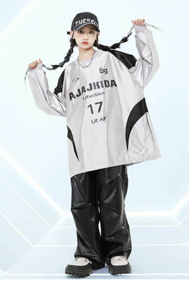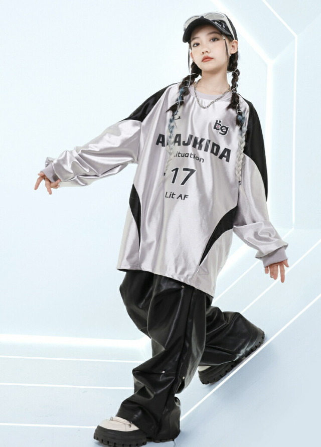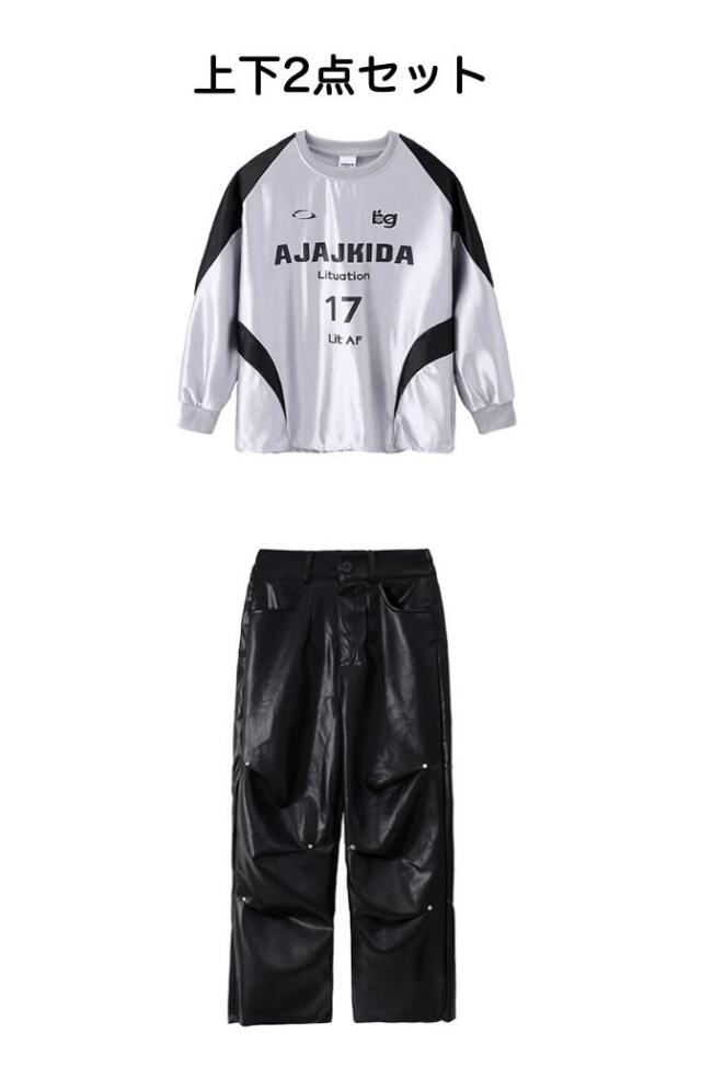 キッズダンス衣装 セットアップ シルバー 長袖 シャツ ブラック パンツ ヒップホップ hiphop kpop 韓国 子供 キッズ ダンス衣装 女の子 男の子