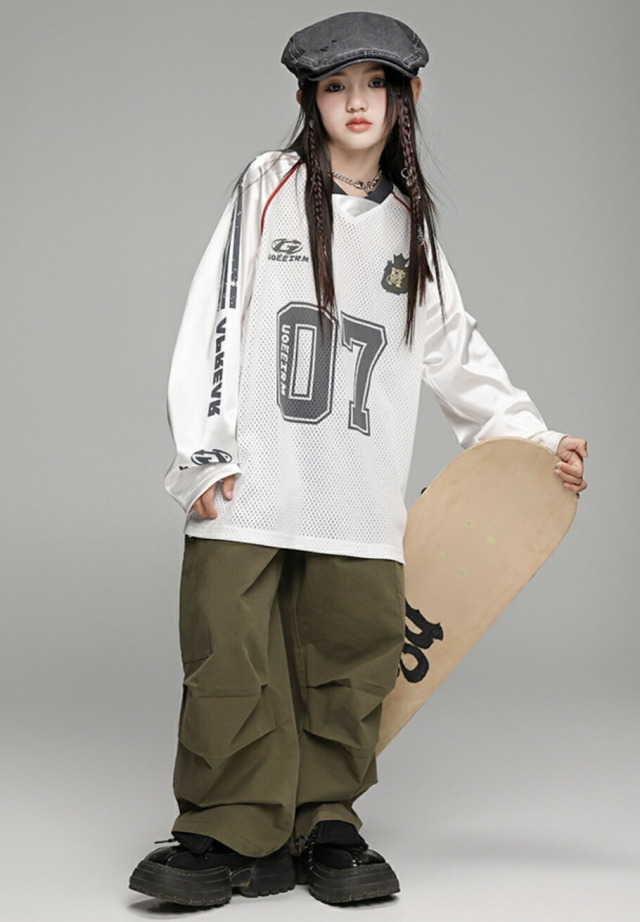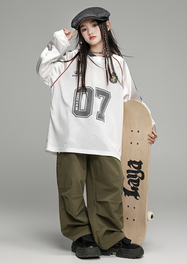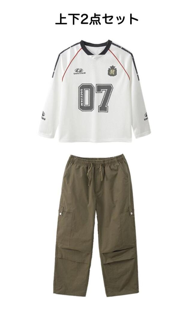 キッズダンス衣装 セットアップ 長袖 シャツ カーキグリーンカーゴパンツ ホワイト ヒップホップ hiphop kpop 韓国 子供 キッズ ダンス衣装 女の子 男の子