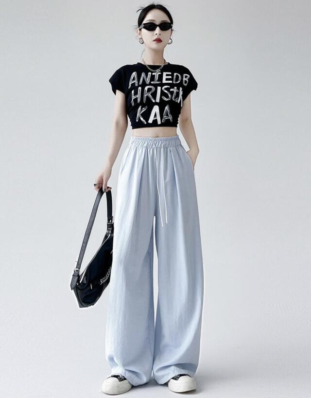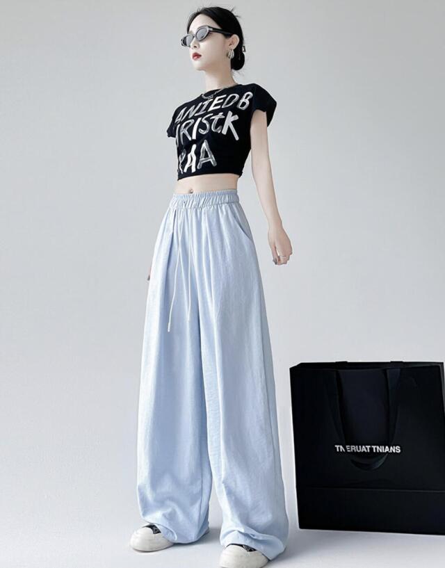 パンツ レディース ホワイト ブラック ライトブルー 夏 薄 ダンス 衣装 ワイドパンツ サラッ 秋 春 冷感 練習着 レッスン着 ストリート hiphop ヒップホップ ガールズ ダンスウェア
