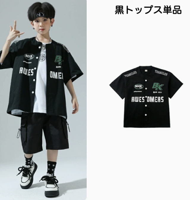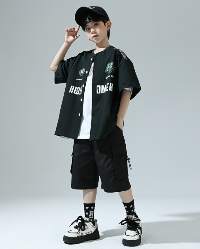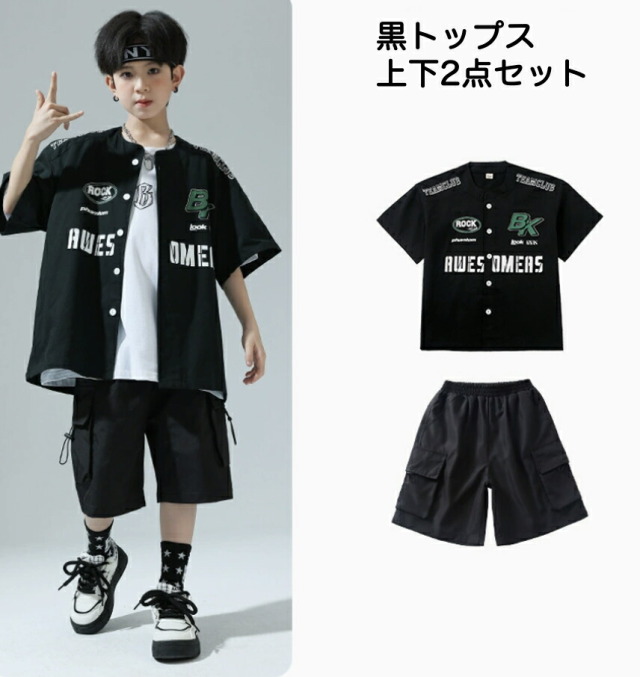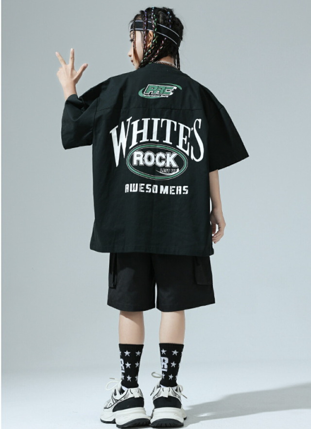 10日23:59まで★全品10%offクーポン! キッズダンス衣装 セットアップ 半袖 シャツ 半ズボン ハーフパンツ短パンツ ヒップホップ hiphop kpop 韓国 子供 キッズ ダンス衣装 女の子 男の子