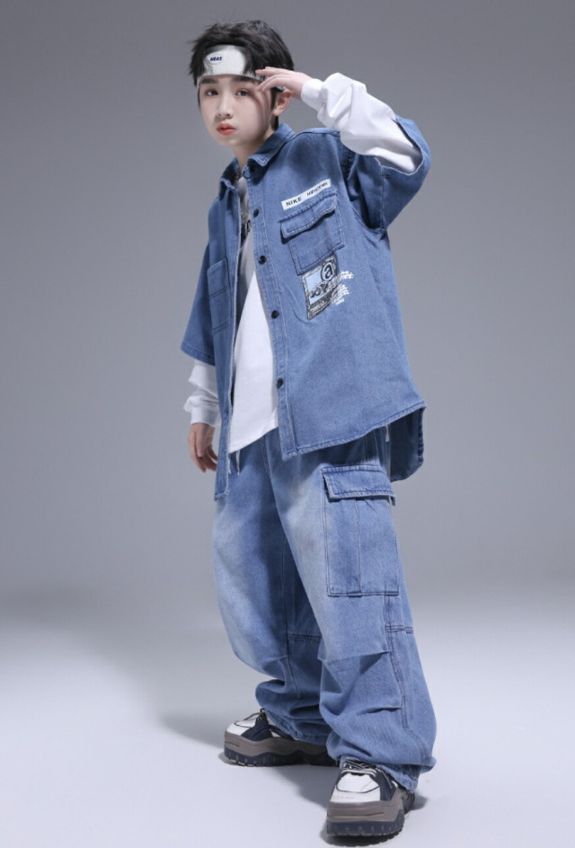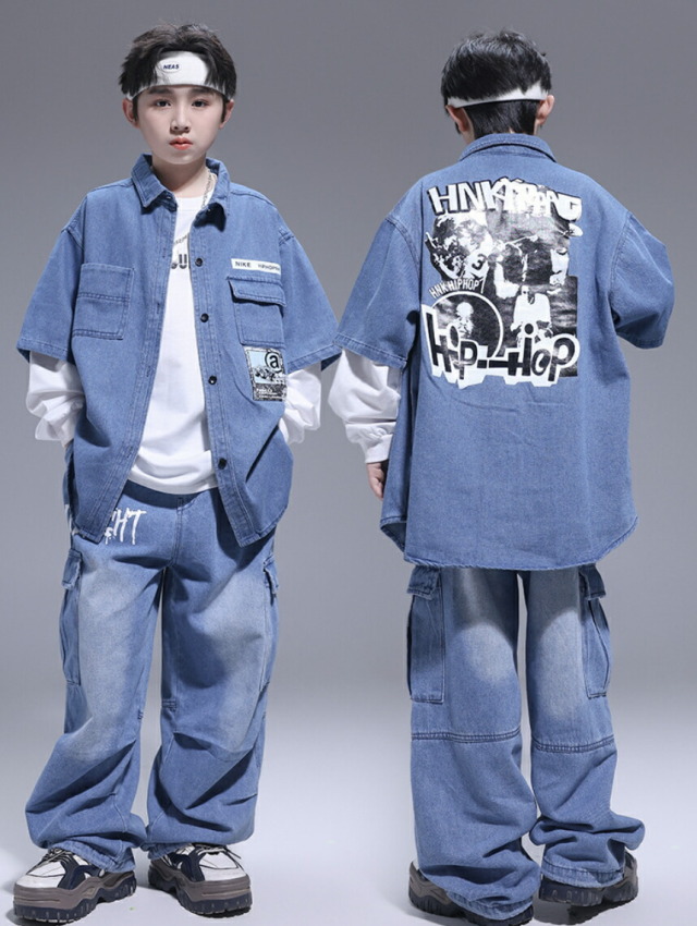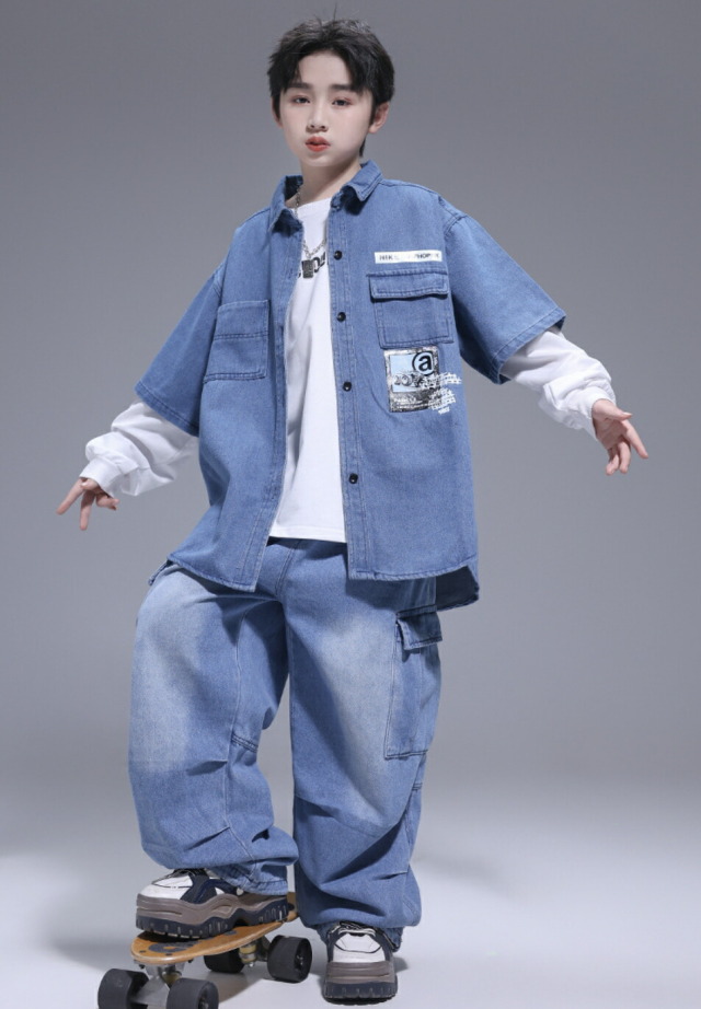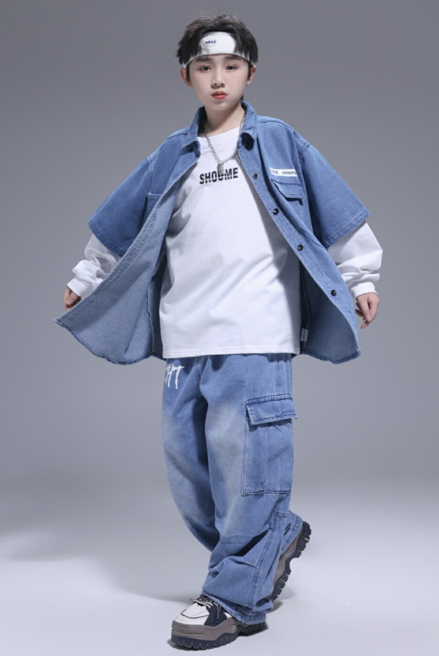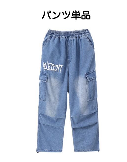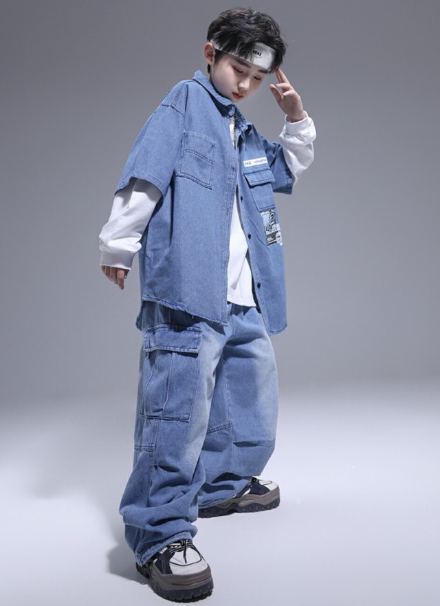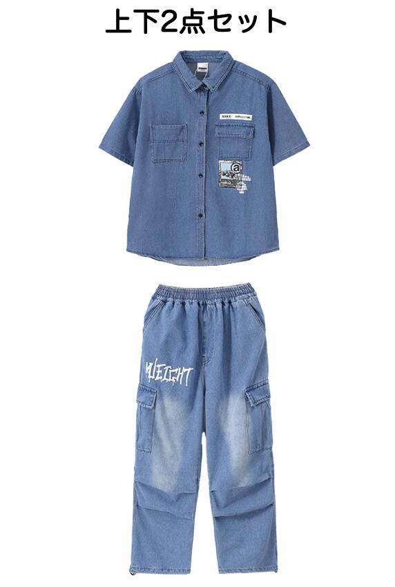 キッズダンス衣装 デニム セットアップ 半袖 シャツ パンツ デニムパンツ カーゴパンツ ヒップホップ hiphop kpop 韓国 子供 キッズ ダンス衣装 女の子 男の子