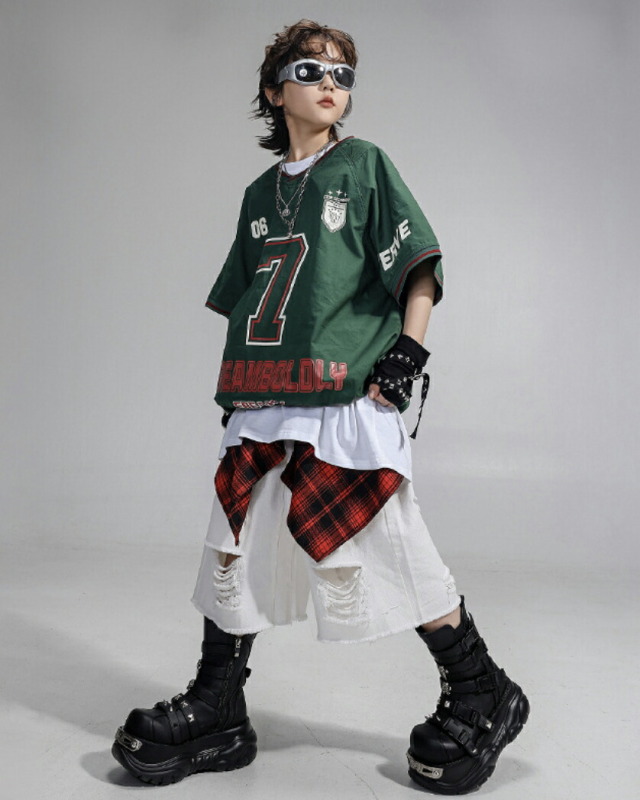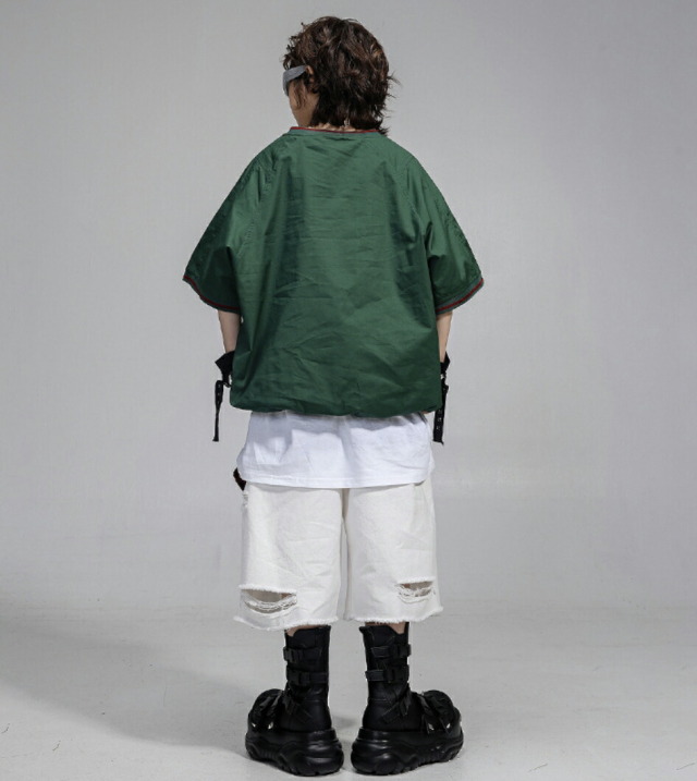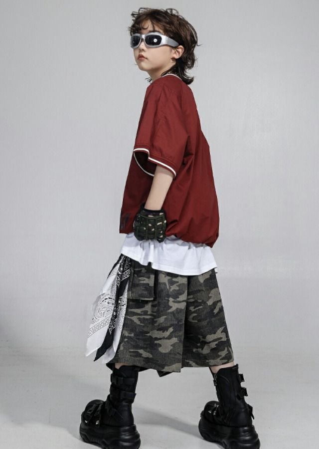 キッズダンス衣装 半袖シャツ 半ズボン ハーフパンツ 短パンツ ホワイト 迷彩 グリーン レッド パンツ ヒップホップ hiphop kpop 韓国 子供 キッズ ダンス衣装 女の子 男の子