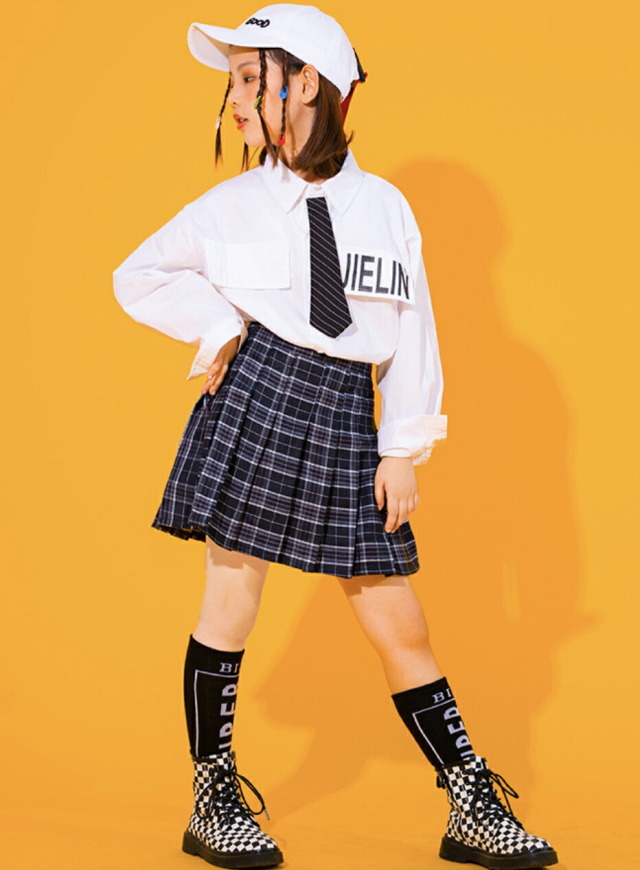 キッズダンス衣装 セットアップ 制服 長袖 シャツ パンツ スカート ネクタイ ユニフォーム ヒップホップ hiphop kpop 韓国 子供 キッズ ダンス衣装 女の子 男の子