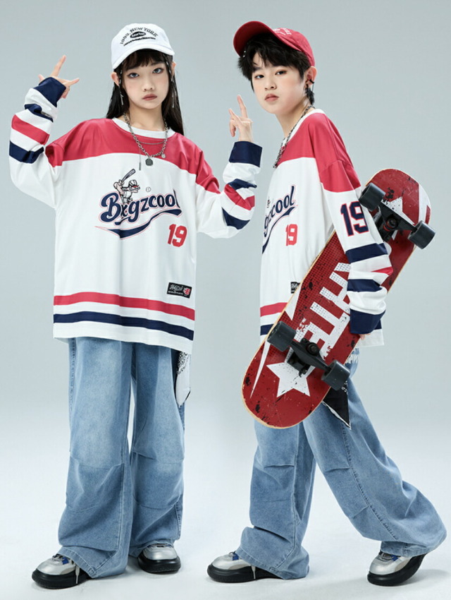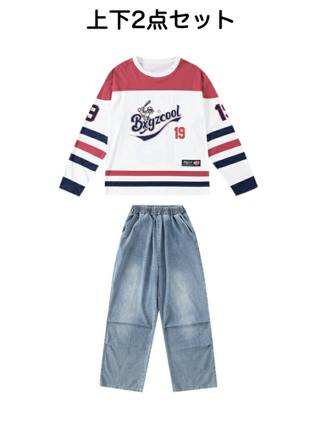キッズダンス衣装 デニム セットアップ 長袖 シャツ パンツ デニムパンツ パラシュートパンツ ヒップホップ hiphop kpop 韓国 子供 キッズ ダンス衣装 女の子 男の子
