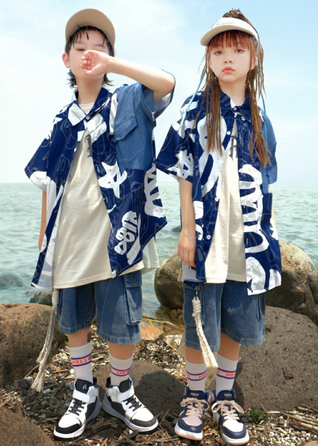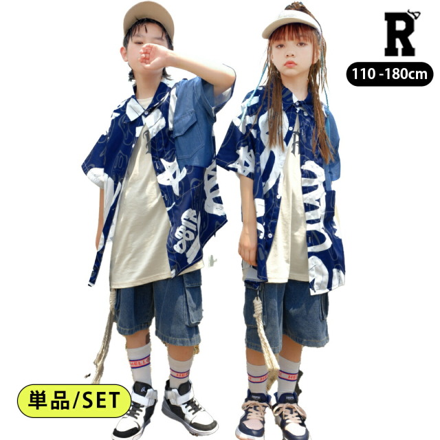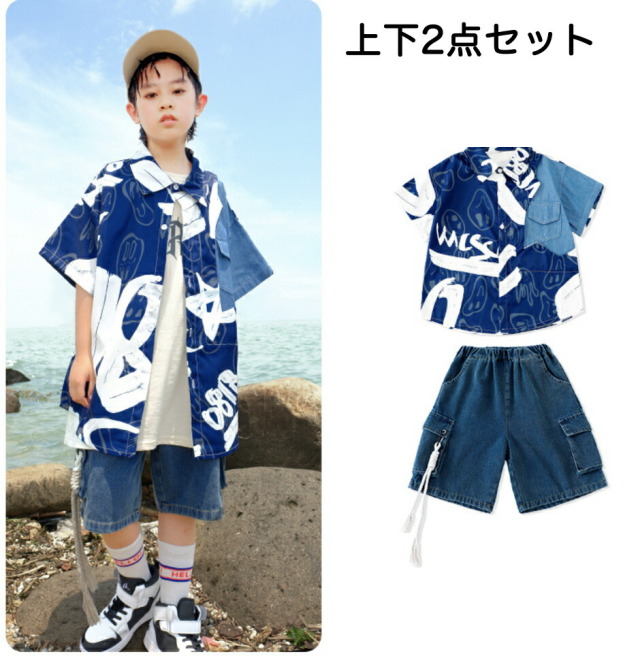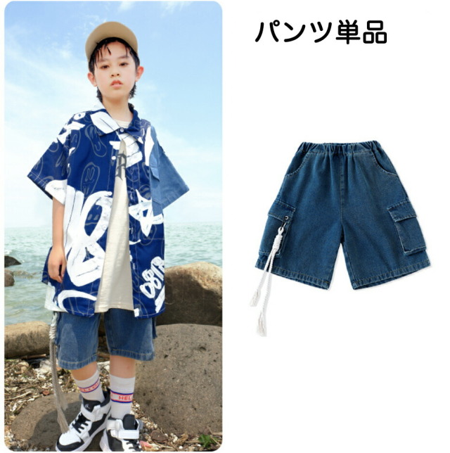 キッズダンス衣装 デニム セットアップ 半袖 シャツ ハーフパンツ デニムパンツ 短パン ヒップホップ hiphop kpop 韓国 子供 キッズ ダンス衣装 女の子 男の子