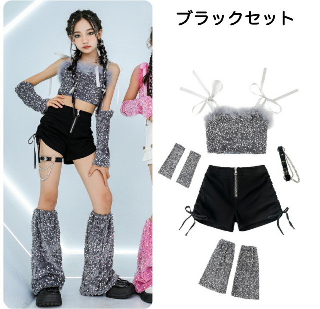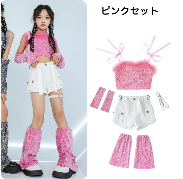 キッズダンス衣装 ガールズ セットアップ ノースリーブ タンクトップ ショートパンツ ホットパンツ 肩出し ヒップホップ kpop キッズ ダンス衣装 女の子