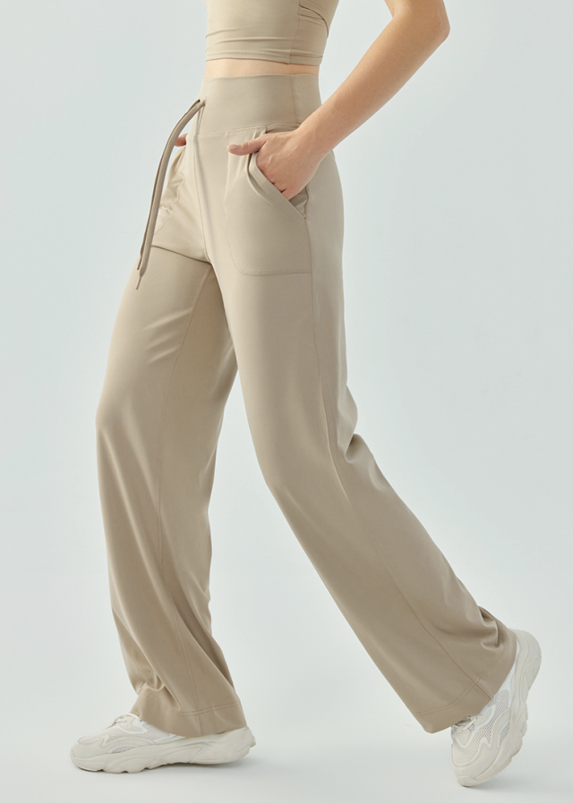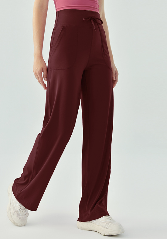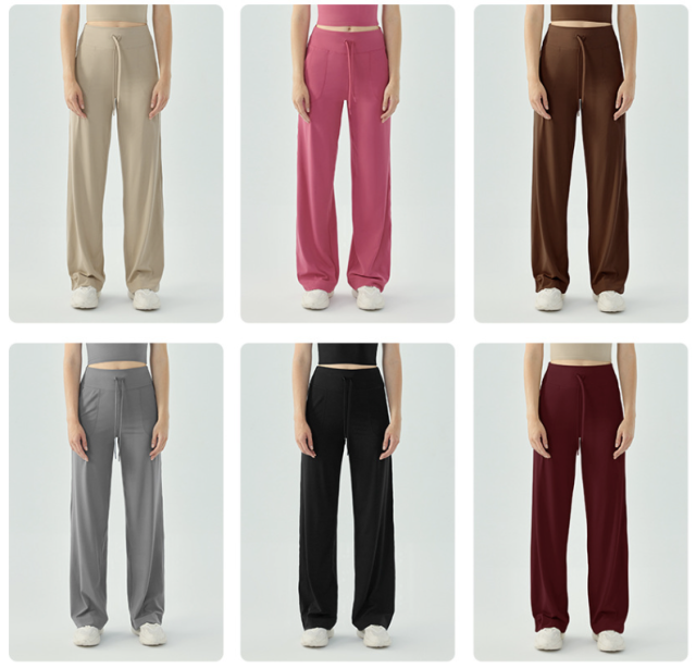 ヨガパンツで、ブラック、ベージュ、ブラウン、グレー、ワインレッド、ピンクの6色展開。伸縮性のあるストレッチ素材で動きやすく、ストレートパンツタイプで脚のラインを美しく見せます。軽量で春夏秋の3シーズン対応。S、M、L、XLの4サイズ展開で、ヨガやフィットネス、ズンバの練習着として最適。レッスン着やスポーツウェア、イージーパンツとしても活躍する万能アイテムです。