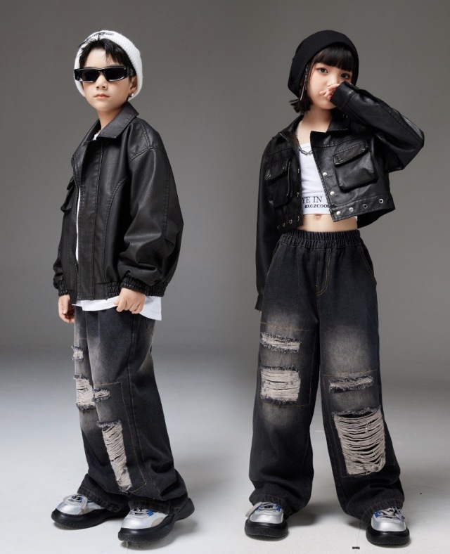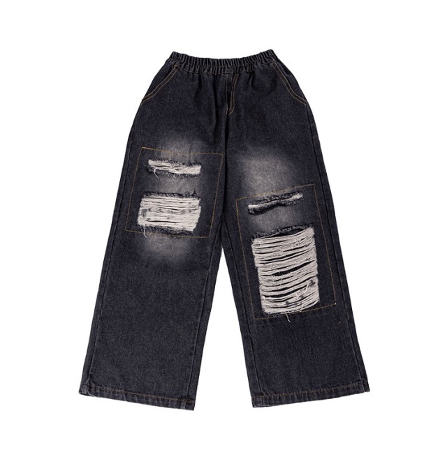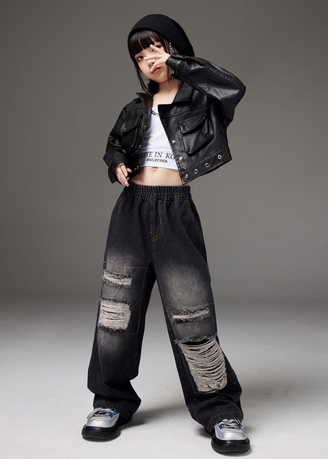 キッズ ダンス ダメージ デニム パンツ 衣装 ダメージ ブラック 黒 ゆったり ダボっヒップホップ hiphop kpop 韓国 子供 キッズ ダンス衣装 女の子 男の子