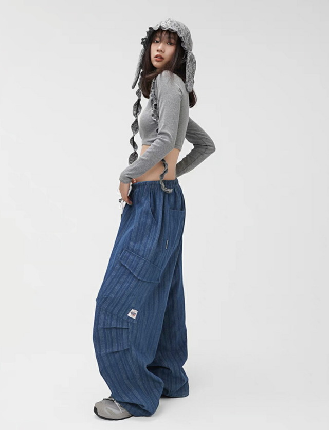 【CBX LAB】パンツ レディース デニム ダンス 衣装 カーゴパンツ ブルー 秋 春 冬 練習着 レッスン着 ストリート hiphop ヒップホップ ガールズ ダンスウェア