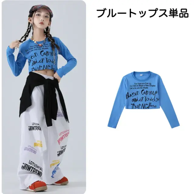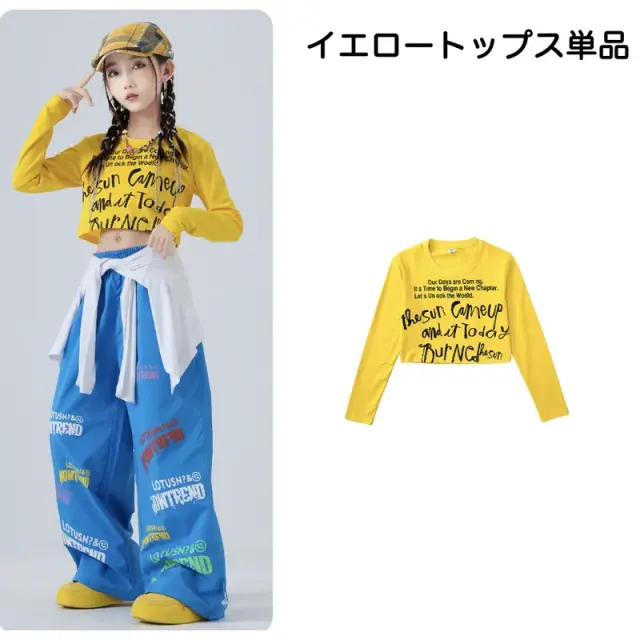 キッズダンス衣装 ダンスウェア 長袖 シャツ イエロー ブルー ピンク ブラック ホワイト ヘソだし ヒップホップ hiphop kpop 韓国 子供 キッズ ダンス衣装 女の子