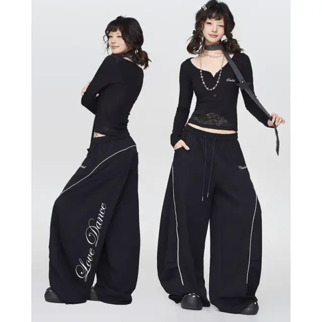 【CBX LAB】スウェットパンツ レディース ブラック グレー ダンス 衣装 ワイドパンツ パンツ 秋 春 夏 練習着 レッスン着 ストリート ヒップホップ ガールズ ダンス