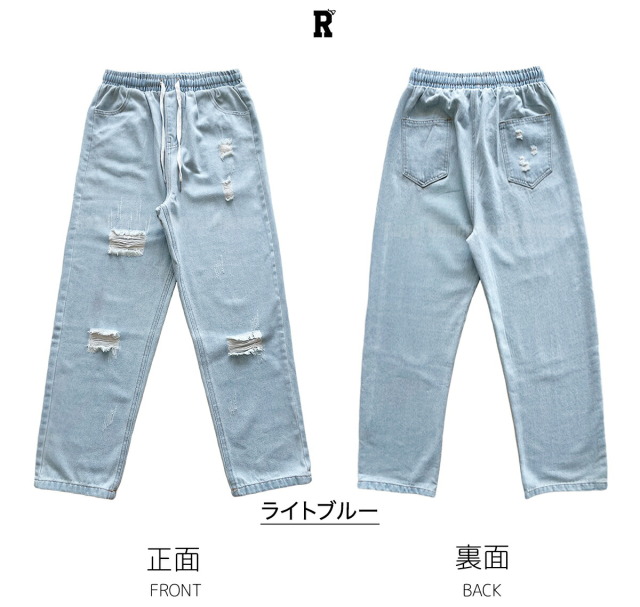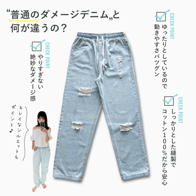 ダメージデニム パンツ レディース ダンス 練習着 衣装 ワイドパンツ ズンバウェア ジーンズ ストレート ゆったり ダボダボ ボトムス ズボン ライトブルー レッスン着 ジムウェア 青 ブルー