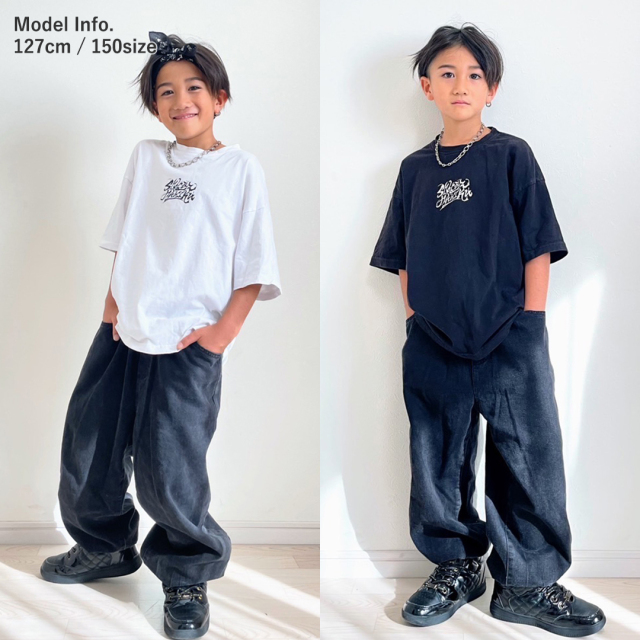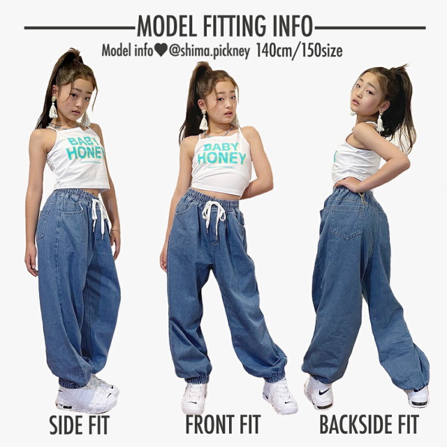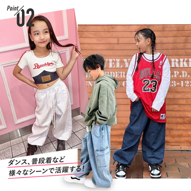 ゆるフィットデザインのキッズダンス用デニムパンツ。綿100%素材を使用したダンス専門デニムで、ゆったりダボダボシルエットが特徴。ブルー・ブラック・ホワイトの3色展開で、韓国風のトレンディなスタイリング。ヒップホップ・K-POPダンス・ストリートダンスに最適で、練習着からレッスン着まで幅広く対応。7サイズ展開で男女兼用、お子様の快適な動きをサポートする、キッズダンサーに定評の高いジーンズです。