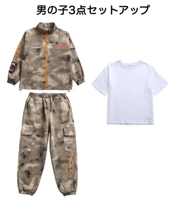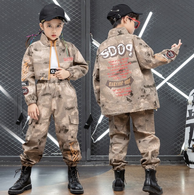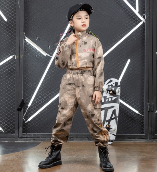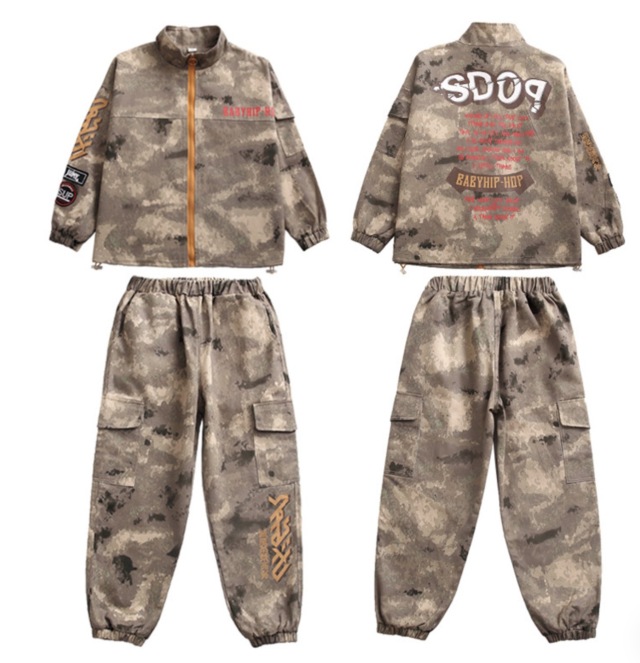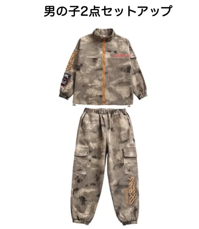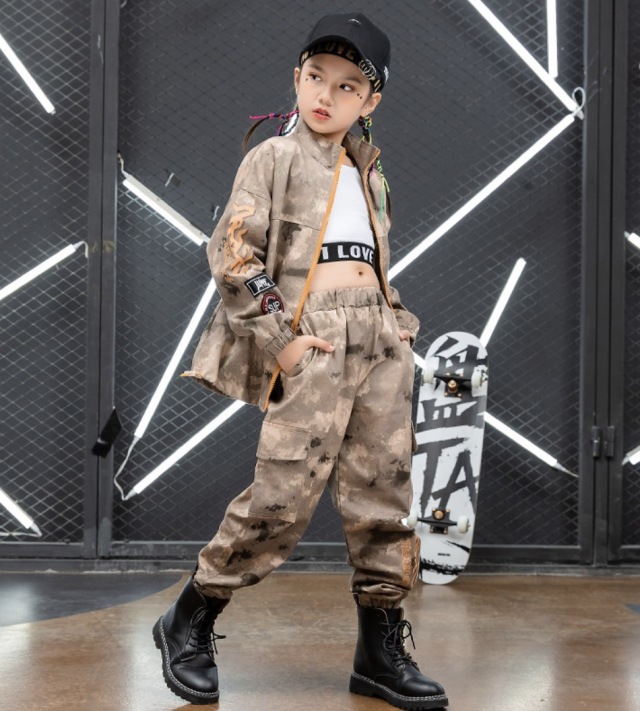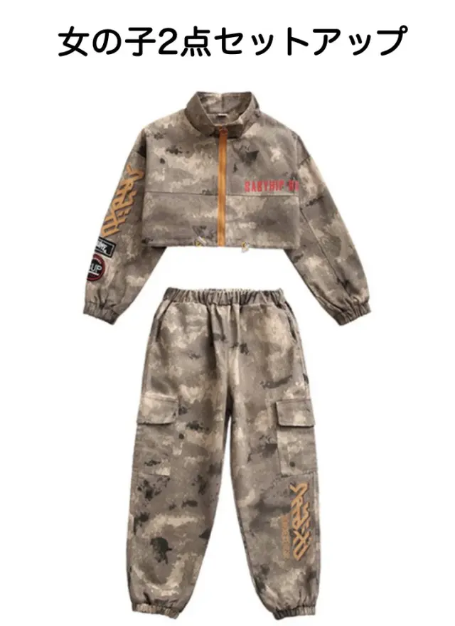 キッズ ダンス 衣装 迷彩 セットアップ ヒップホップ トップス パンツ ボトムス kpop カモフラージュ ストリート 韓国 子供 子ども 女の子 男の子 キッズダンス衣装
