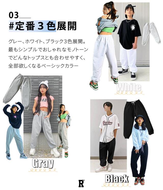 即納 キッズ ダンス 衣装 スウェットパンツ 子供 薄手 ジョガーパンツ おしゃれ 練習着 吸汗速乾 キッズダンス衣装 グレー ホワイト ブラック 白 黒 モノトーン ヒップホップ ワイドパンツ hiphop kpop 子ども 女の子 男の子
